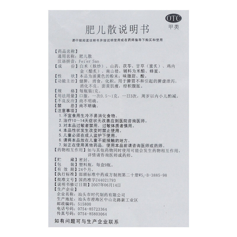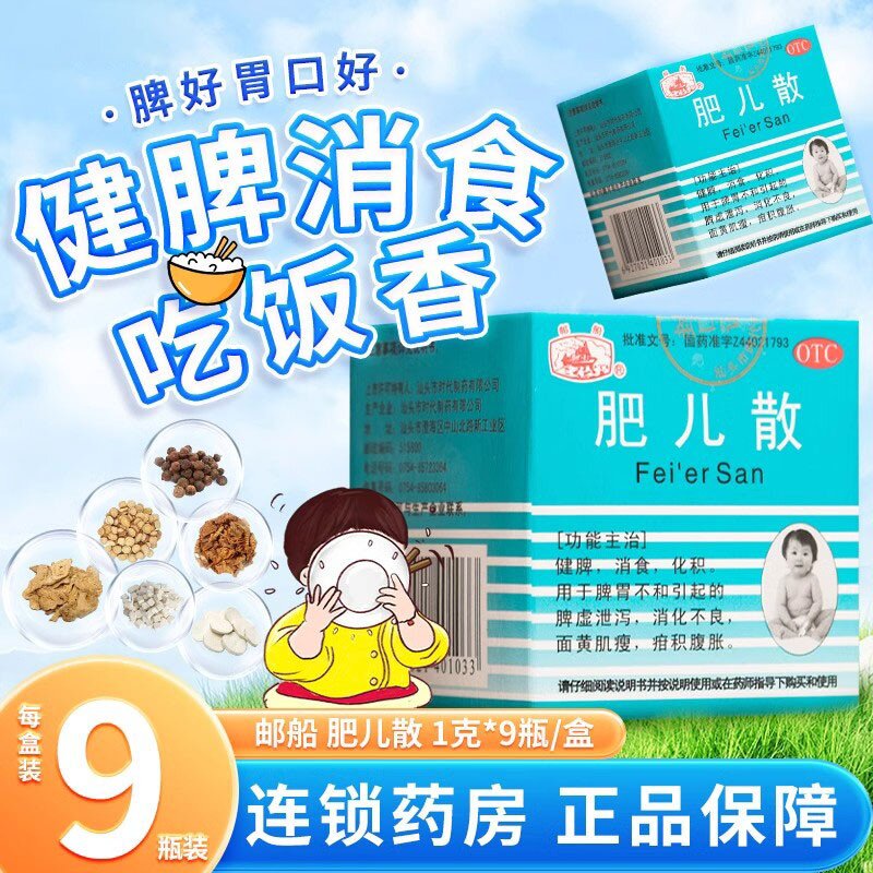 📚 包邮】邮船肥儿散 1g*9瓶/盒健脾消食化胀消化不良面黄肌瘦