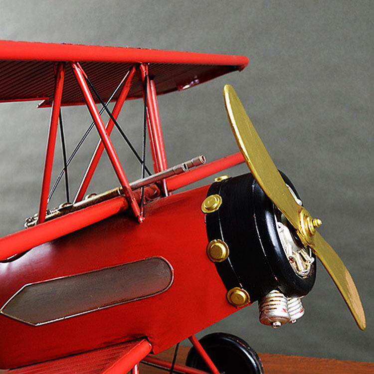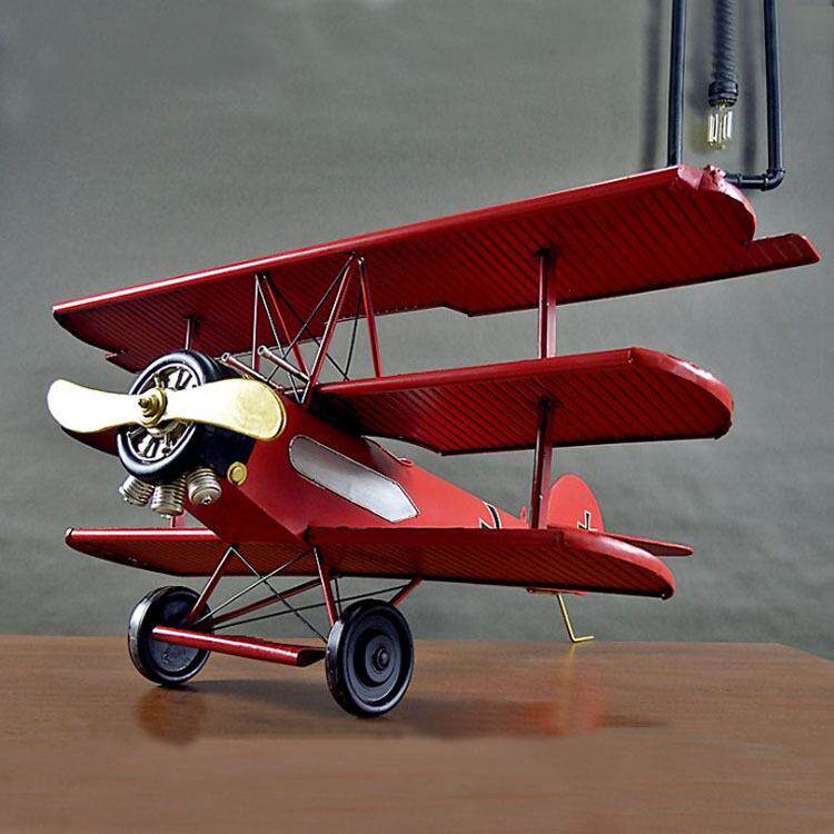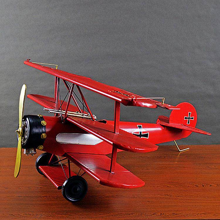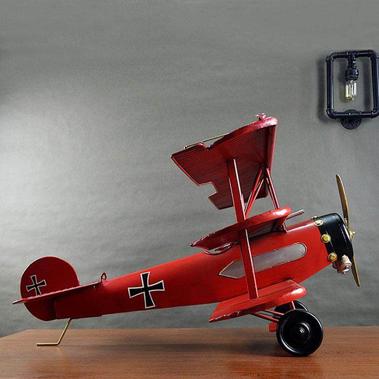 📚 复古铁艺红男爵三翼飞机模型大型二战飞机吊饰摆件家居软装品