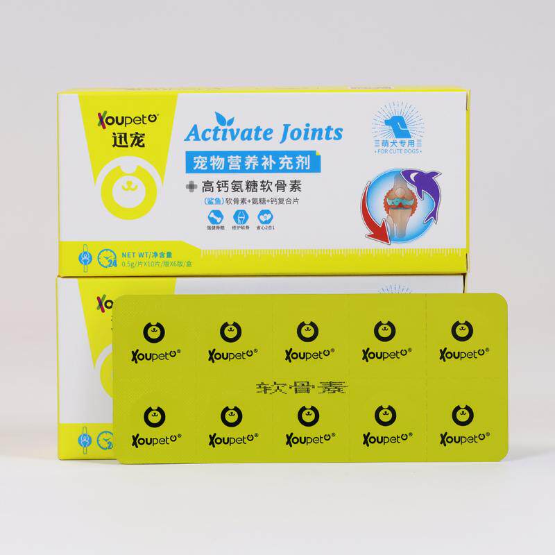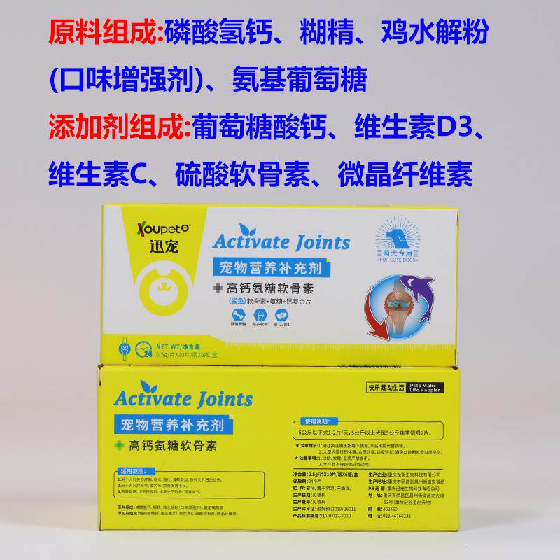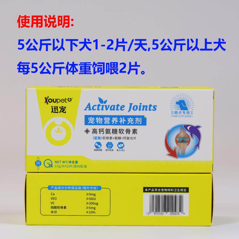 📚 迅宠高氨糖关节软骨素60片狗狗猫咪髌骨脱位幼中老年关节瘸腿跳行