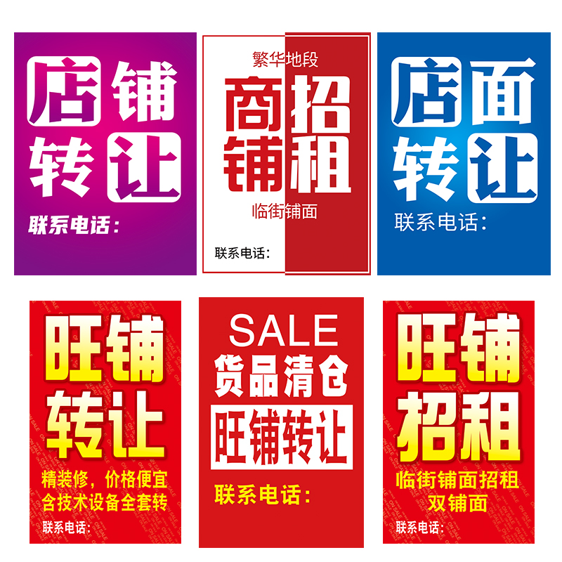 📚 旺铺转让贴纸套房出售服装店奶茶店租售防水铺面出租广告海报制作