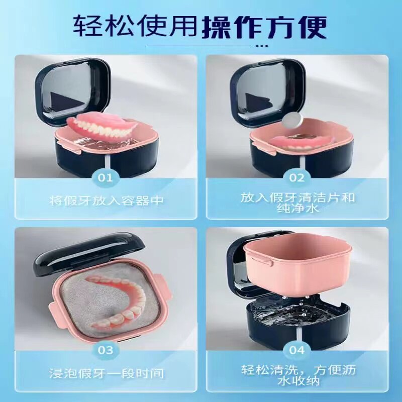 📚 德国假牙收纳盒老人便携式食品级义齿清洁牙套清洗保持器收纳盒子