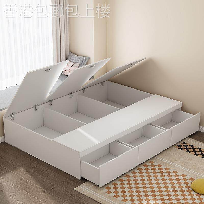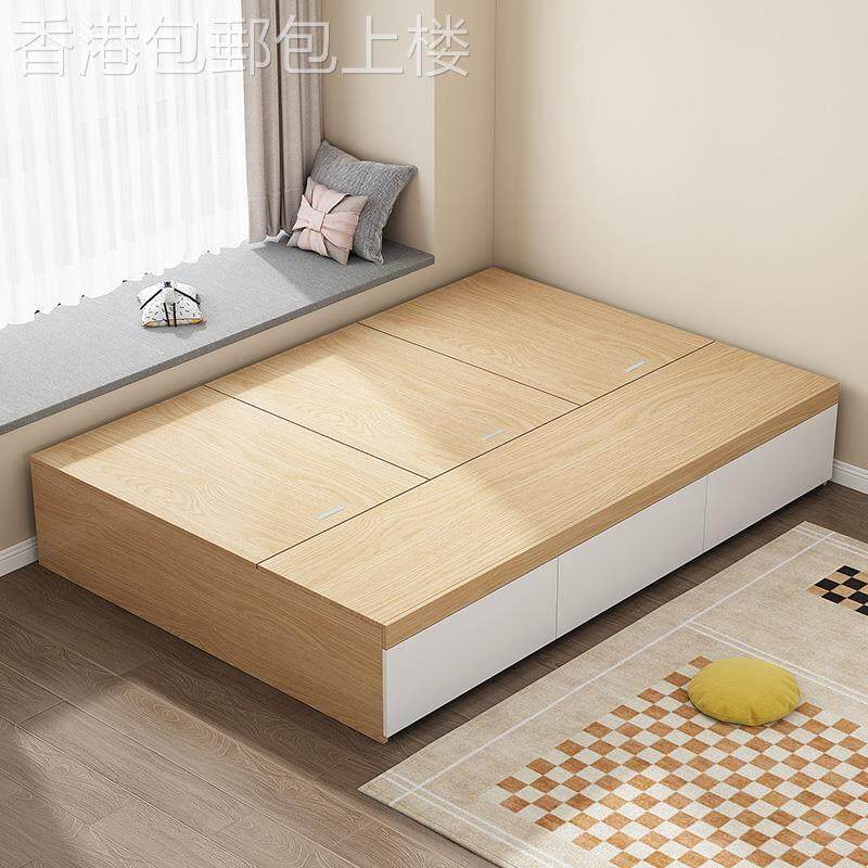 📚 【香港包邮】榻榻米储物无床头床1.5米板式收纳高箱床架双单人床