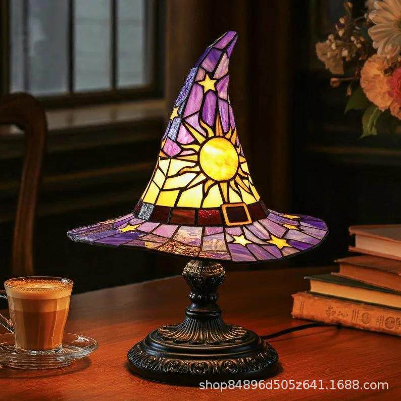 📚 跨境新款Stained Glass Witch Hat Lamp装饰灯客厅室内卧室