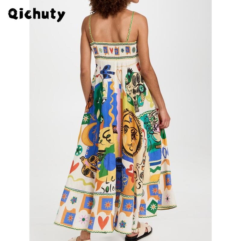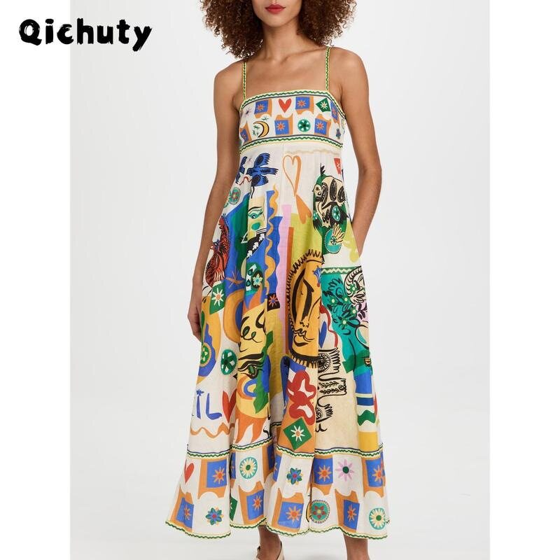 📚 Women Boho Colorful Spaghetti Strap Dress Summer Vacation