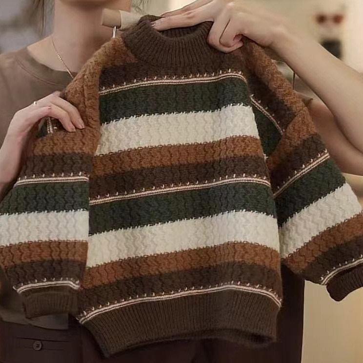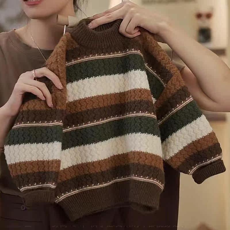 📚 男童复古条纹秋冬加厚毛衣针织衫中大童休闲儿童打底衫宝宝保暖