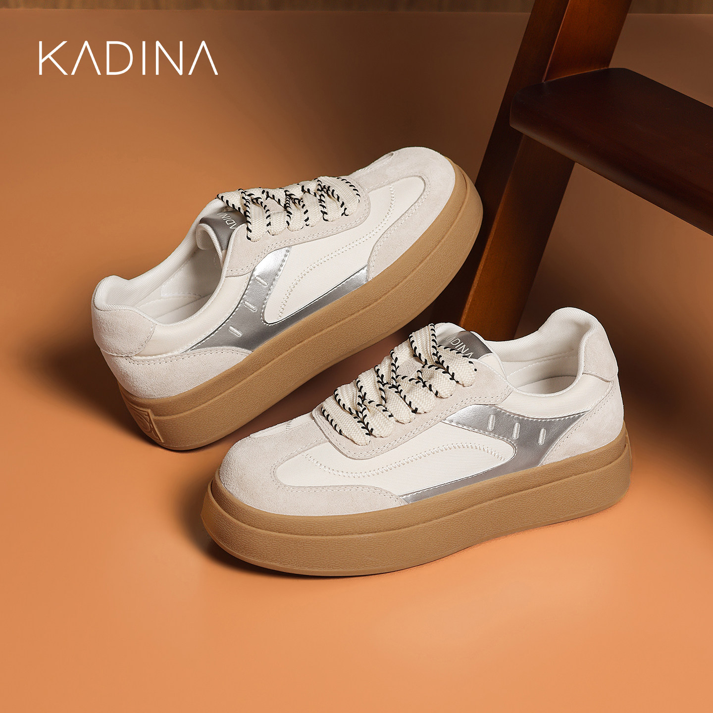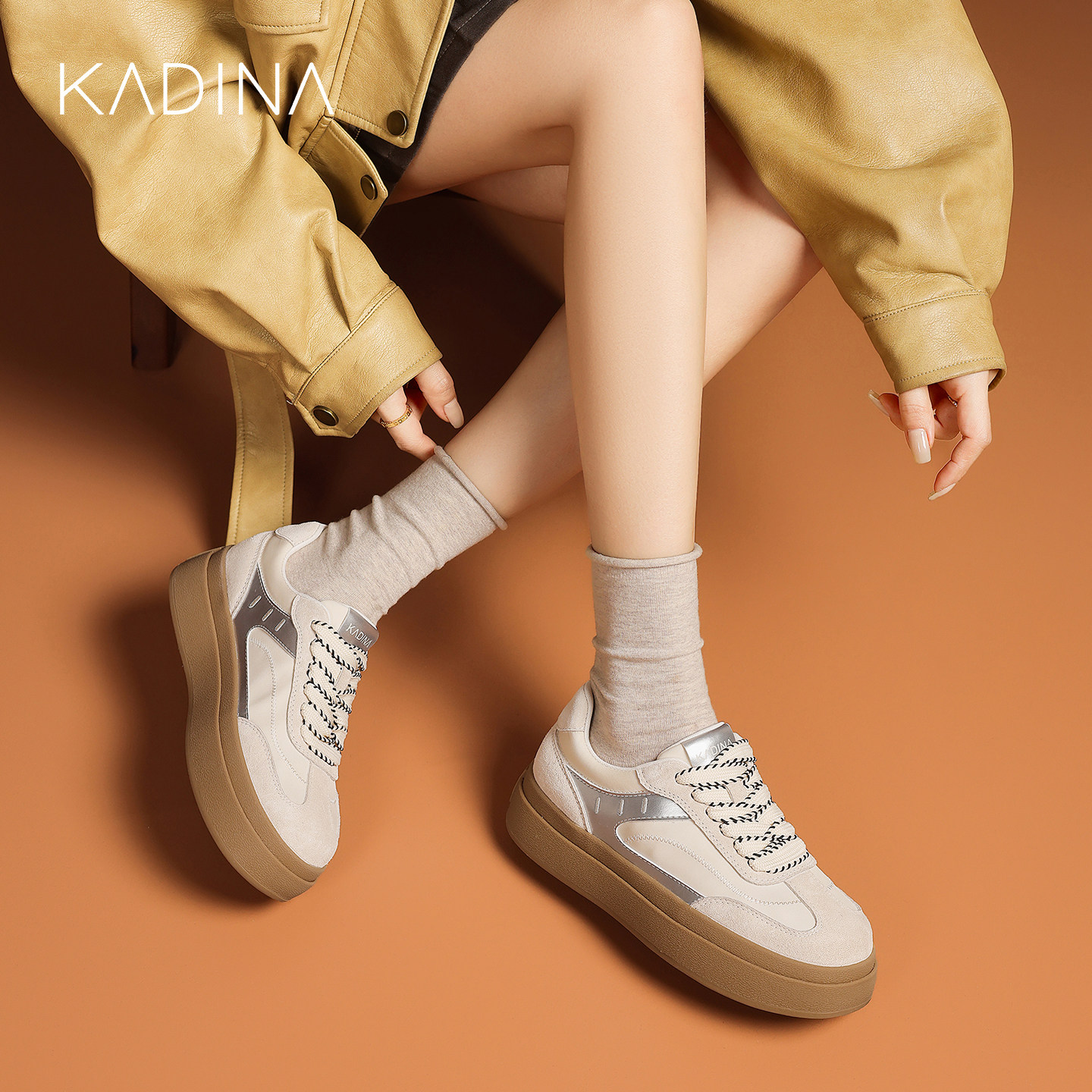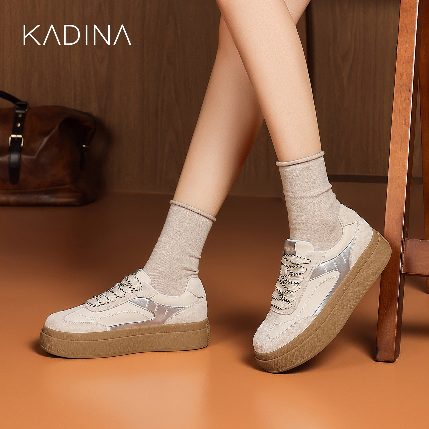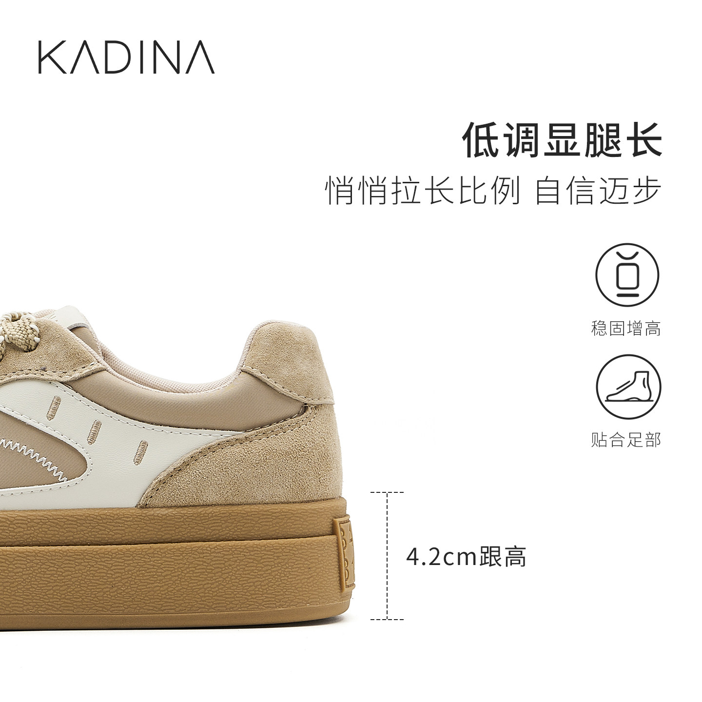 📚 卡迪娜橡胶底德训鞋女2026春季新款复古拼色厚底运动休闲鞋板鞋