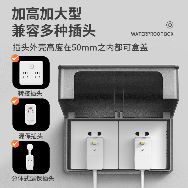 📚 双86型二位二联开关插座防水盒保护罩盖卫生间厨房连体加高防溅盒