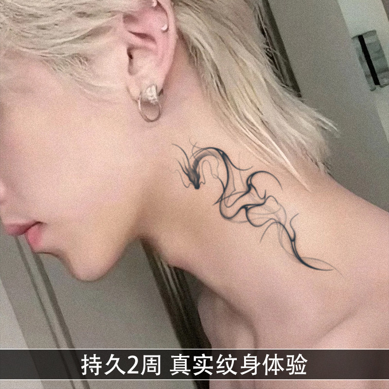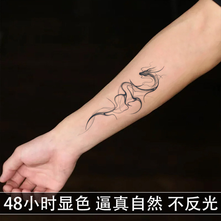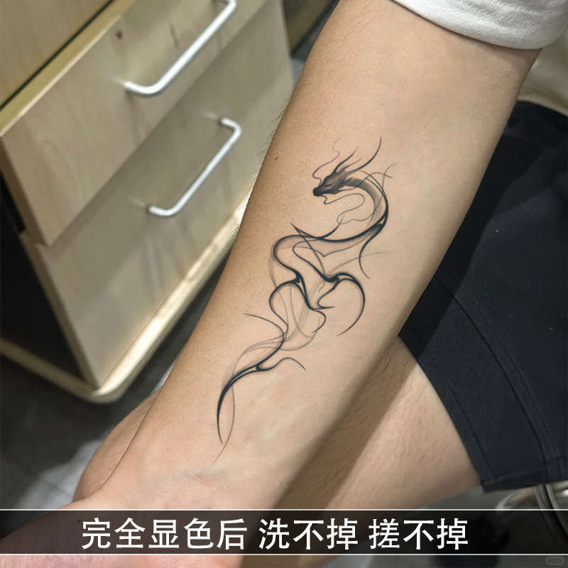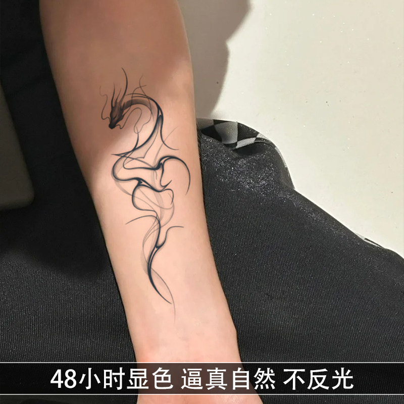 📚 水墨威龙草本纹身贴纸女男tattoo防水持久遮疤腿部锁骨手臂高级感