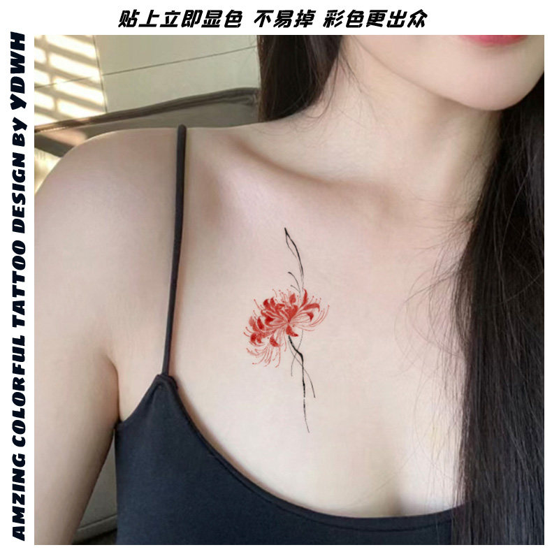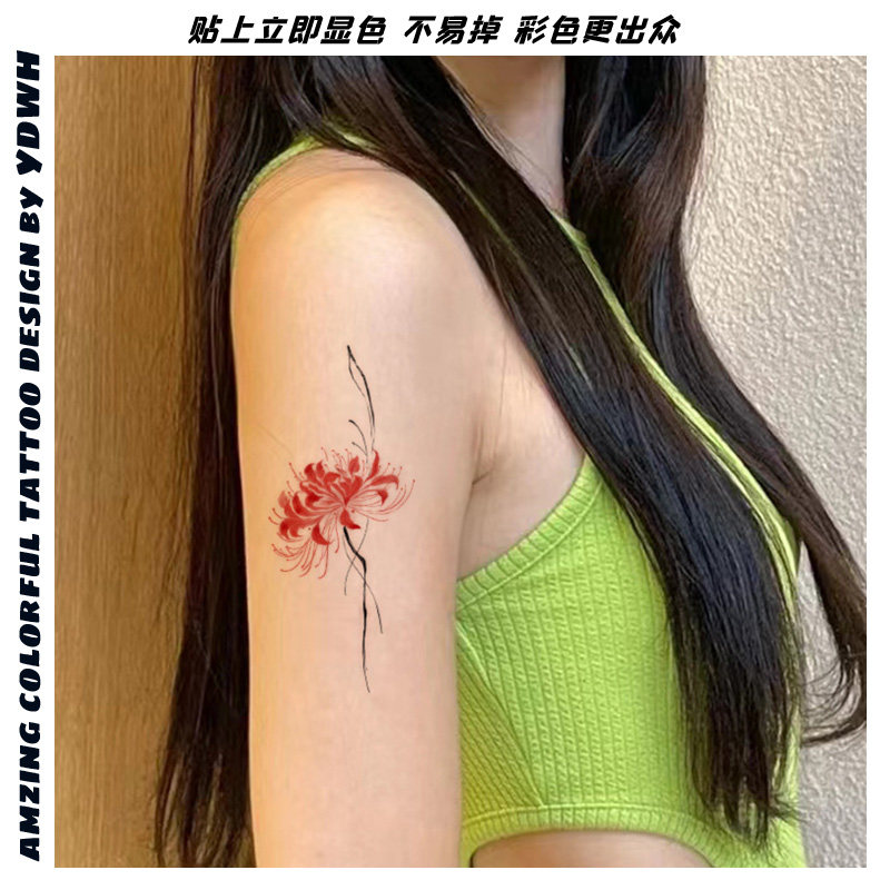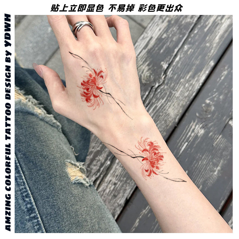 📚 彼岸花纹身贴防水女持久彩色ins风贴纸手腕手臂高级感遮疤tattoo