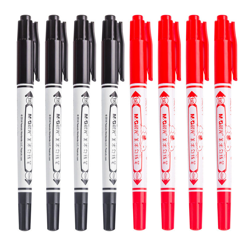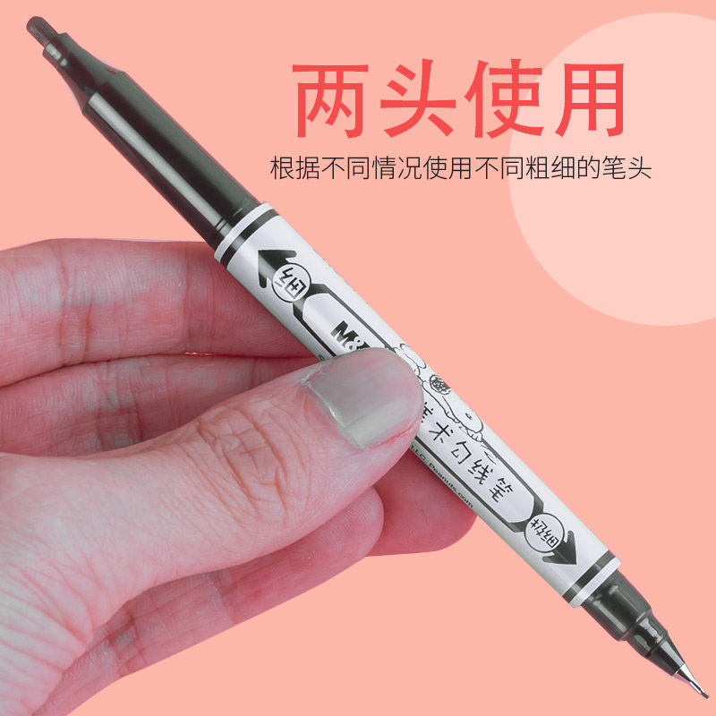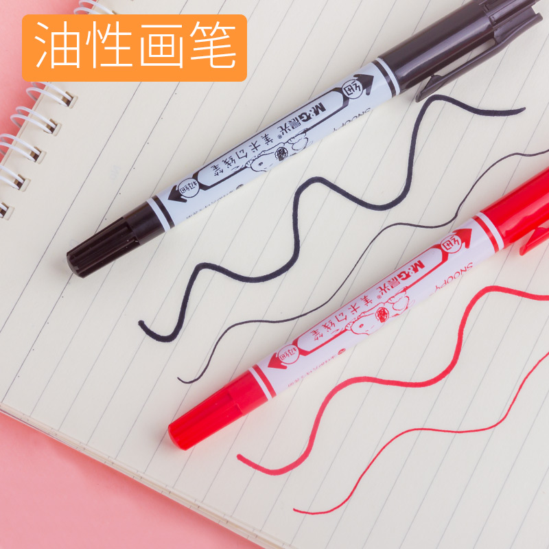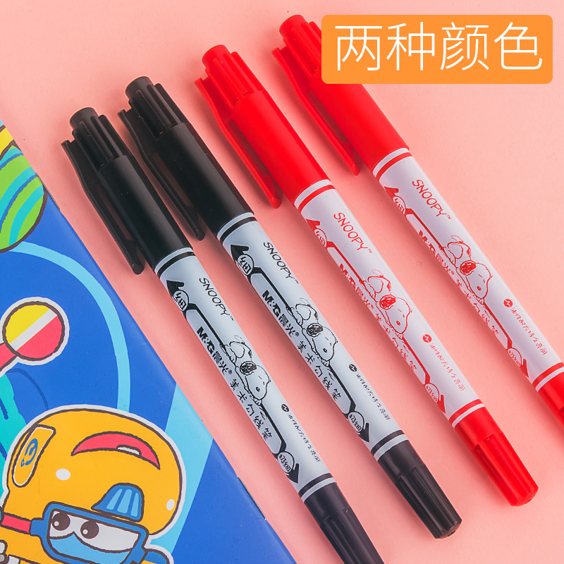 📚 晨光美术勾线笔SUOOPY史努比双头油性记号笔极细头黑色红色美术文具用品21302