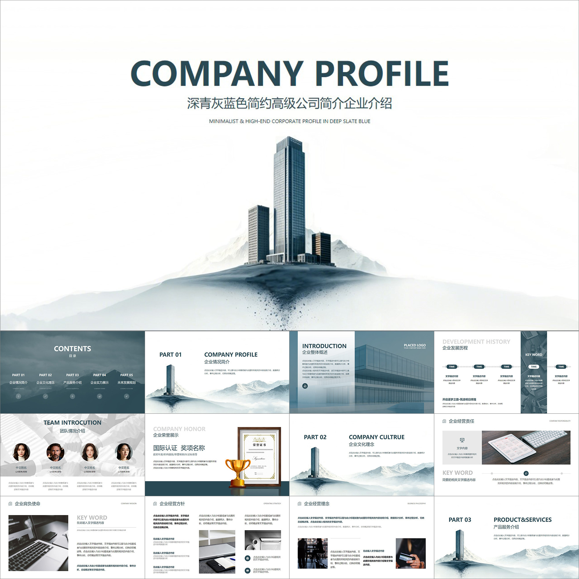 📚 【动态PPT】深青灰蓝色简约高级大气商务公司简介企业介绍PPT模板