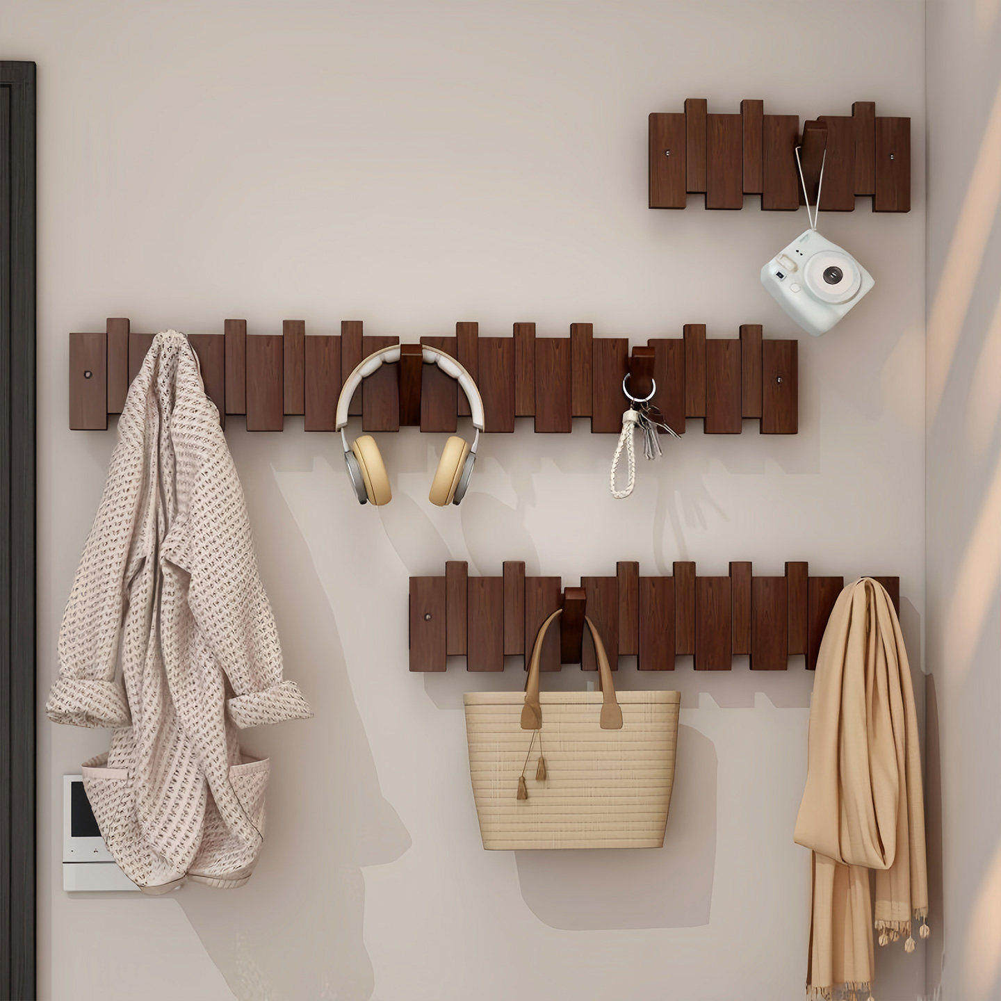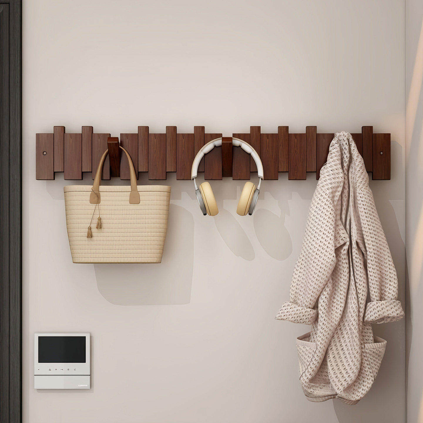📚 钢琴键挂衣架实木墙上壁挂钩卧室玄关入户进门后置物免打孔挂衣钩