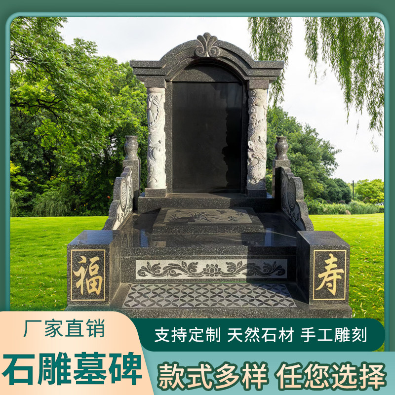 📚 石雕大理石墓碑定制农村花岗岩土葬墓石碑中式公墓陵园组合碑刻字