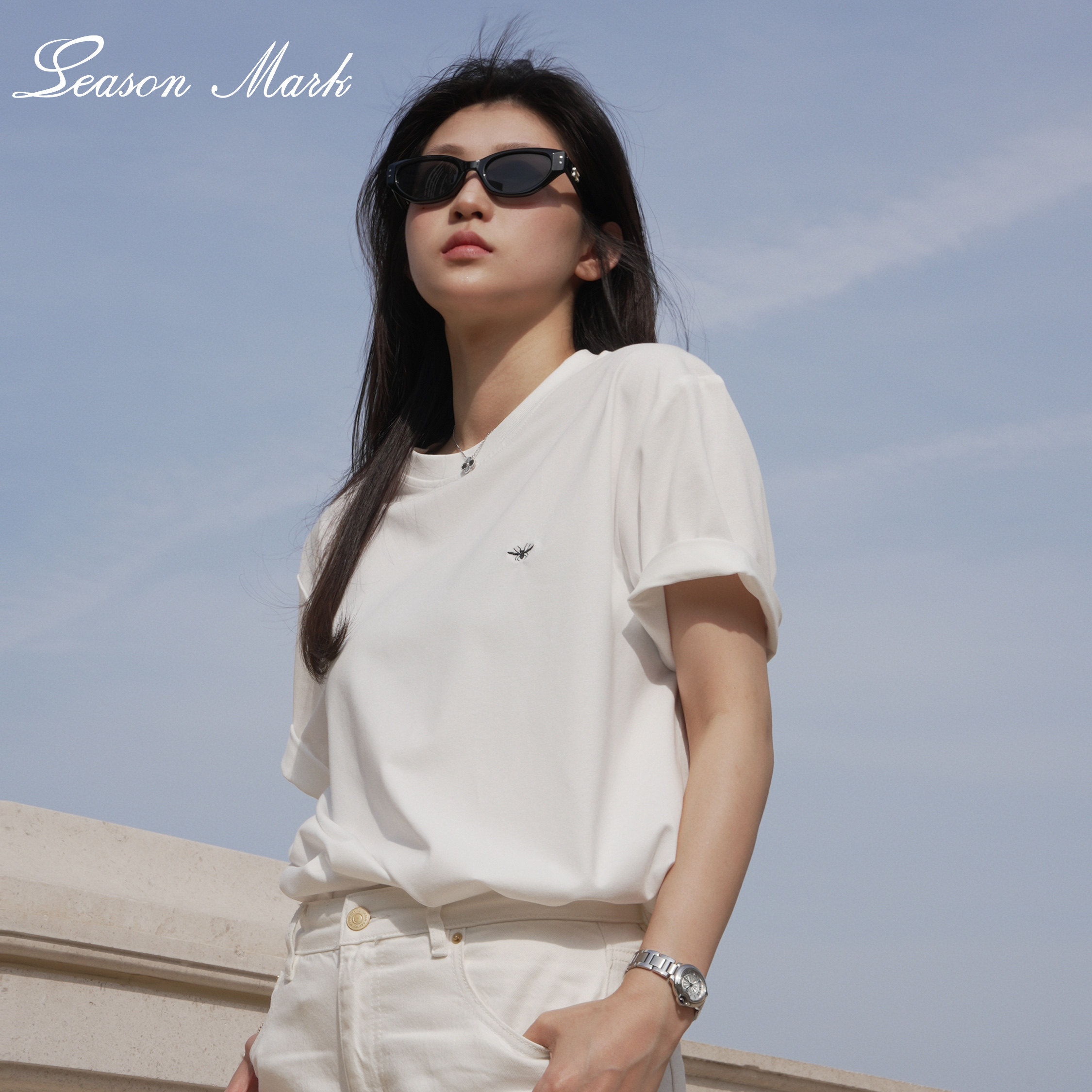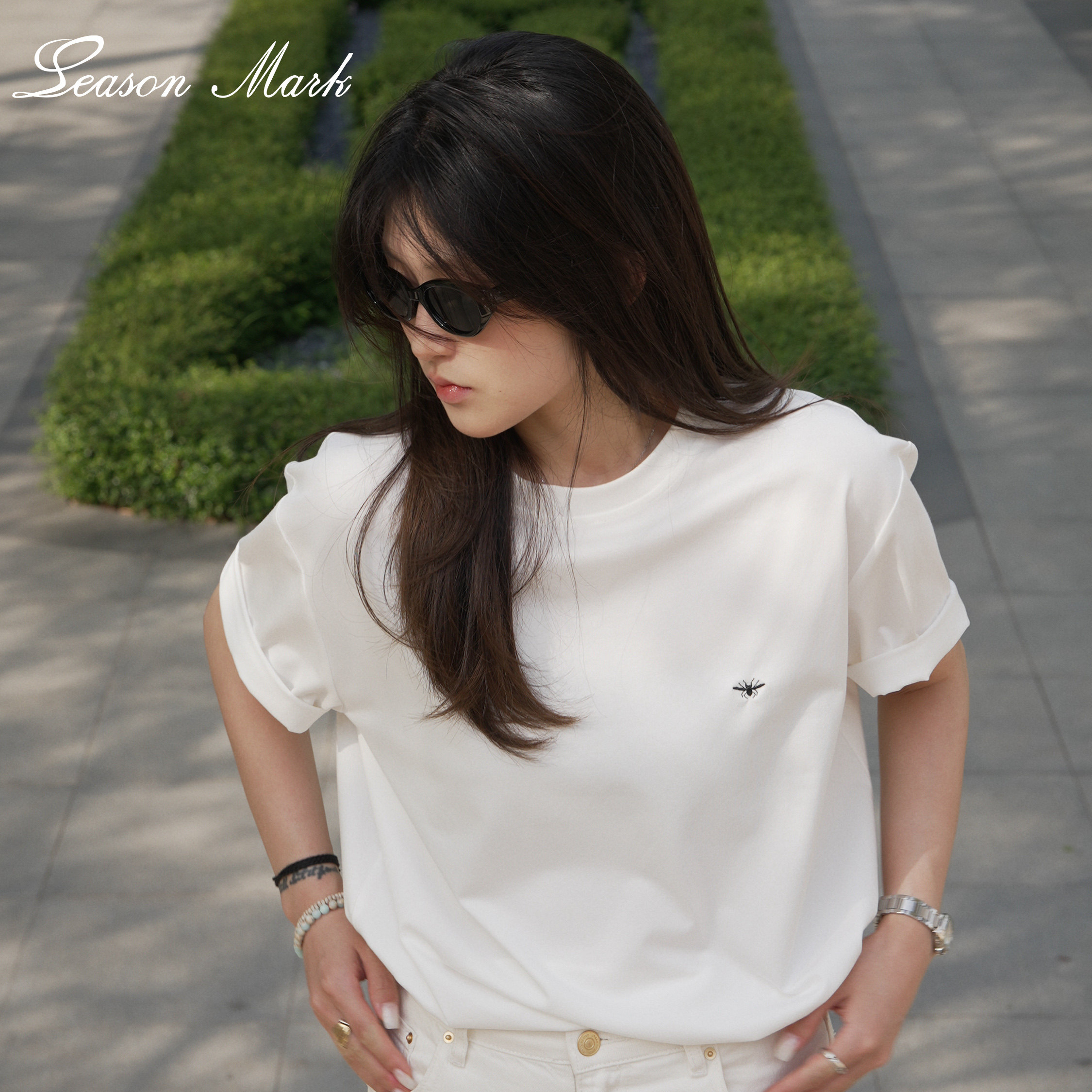 📚 SEASONMARK【C*D系列】索罗娜小蜜蜂刺绣圆领短袖百搭舒适情侣T恤