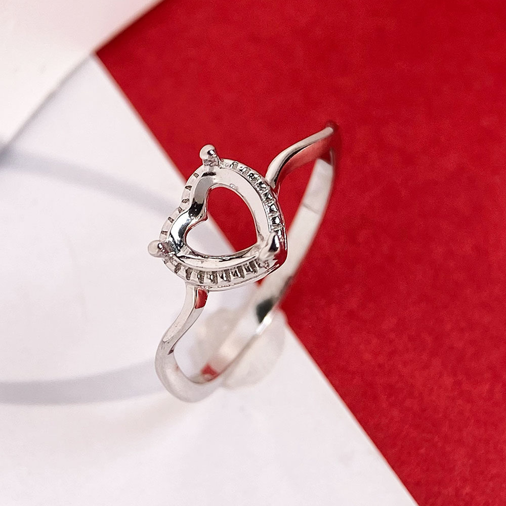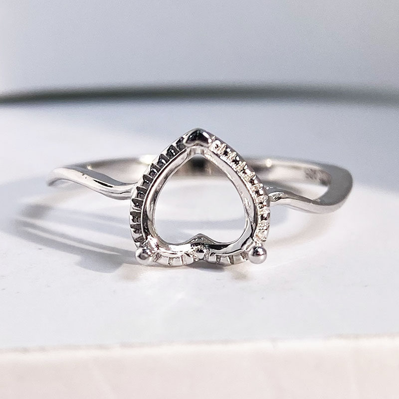 📚 简约波浪戒指空托闭口S925纯银爱心形6mm7mm戒托死口原创设计轻奢