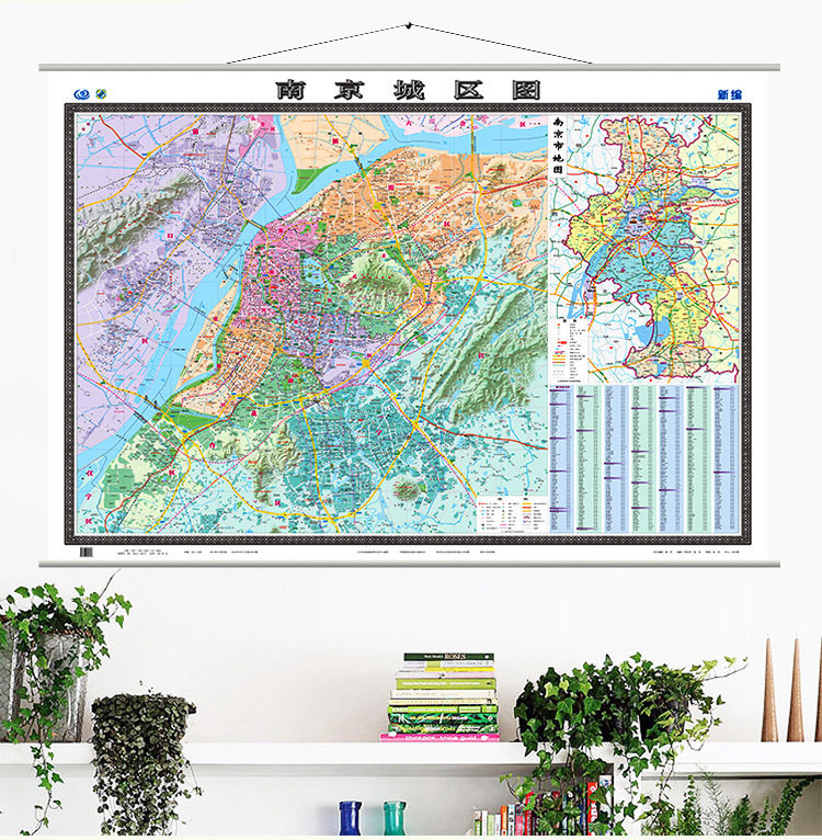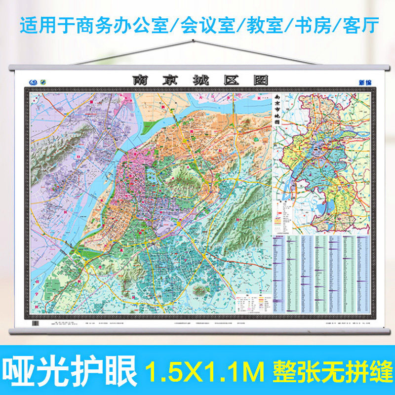 📚 南京城区地图挂图 南京市地图 1.5米X1.1米 双面覆膜双杆防水工艺精品 精装挂绳 高清商务办公系列