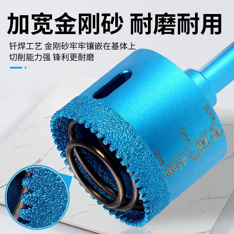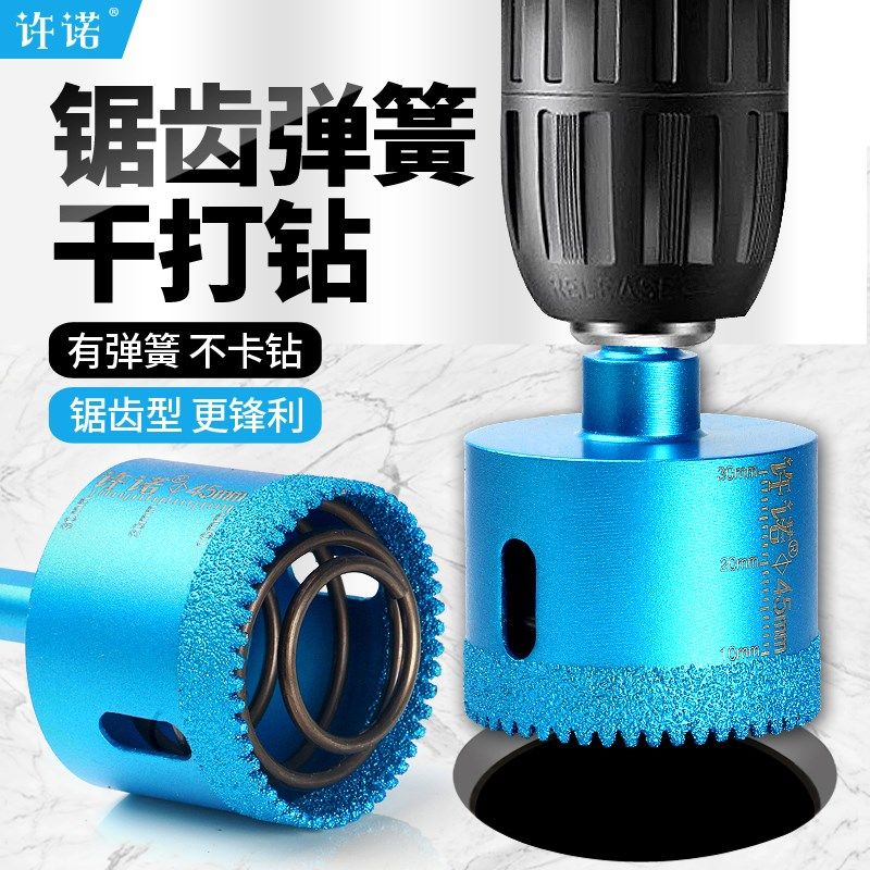 📚 锯齿瓷砖开孔器带弹簧干打钻全磁砖大理石材陶瓷玻璃钎焊打孔钻头