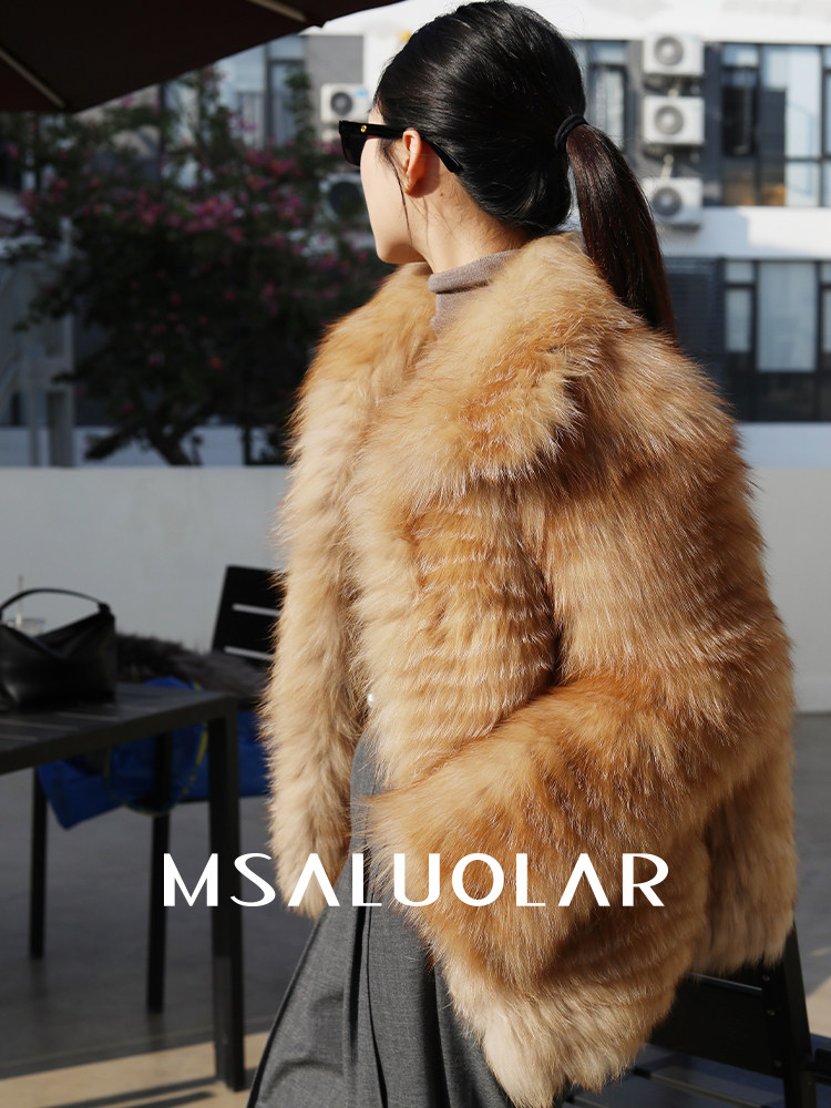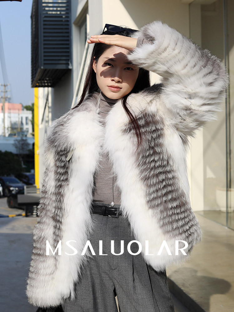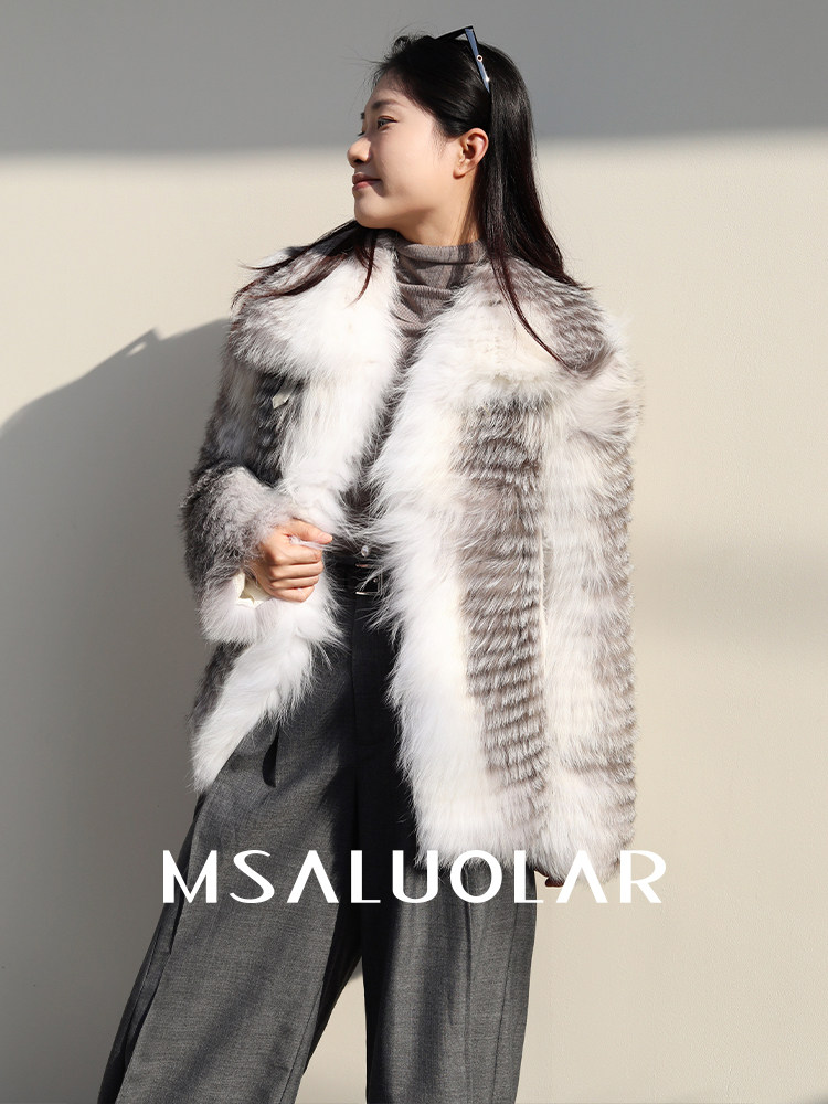 📚 MSALUOLAR罗拉小姐 芬兰进口无缝彩狐白鹅绒狐狸毛皮草大衣羽绒服
