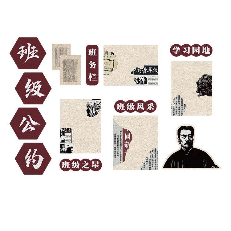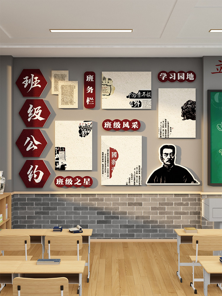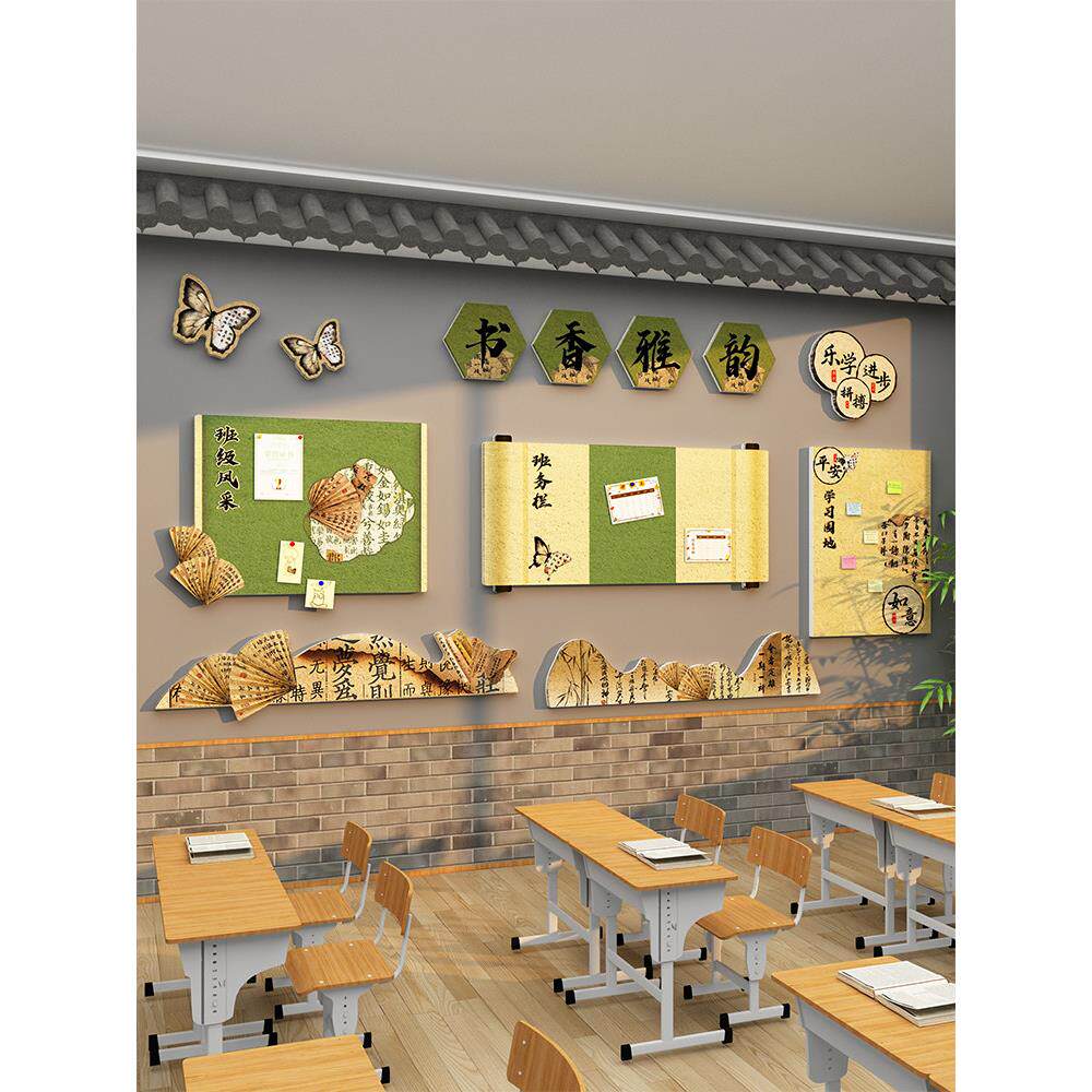 📚 教室布置布置班级大会文化墙贴纸布告板毡板高中初中古民族风貌