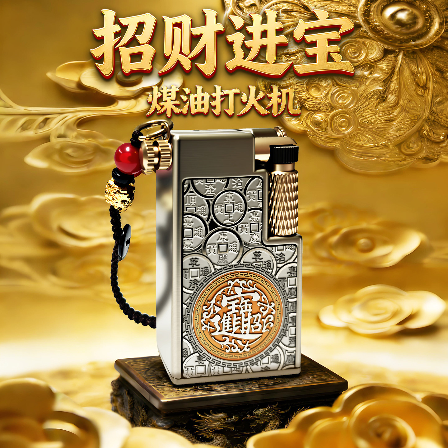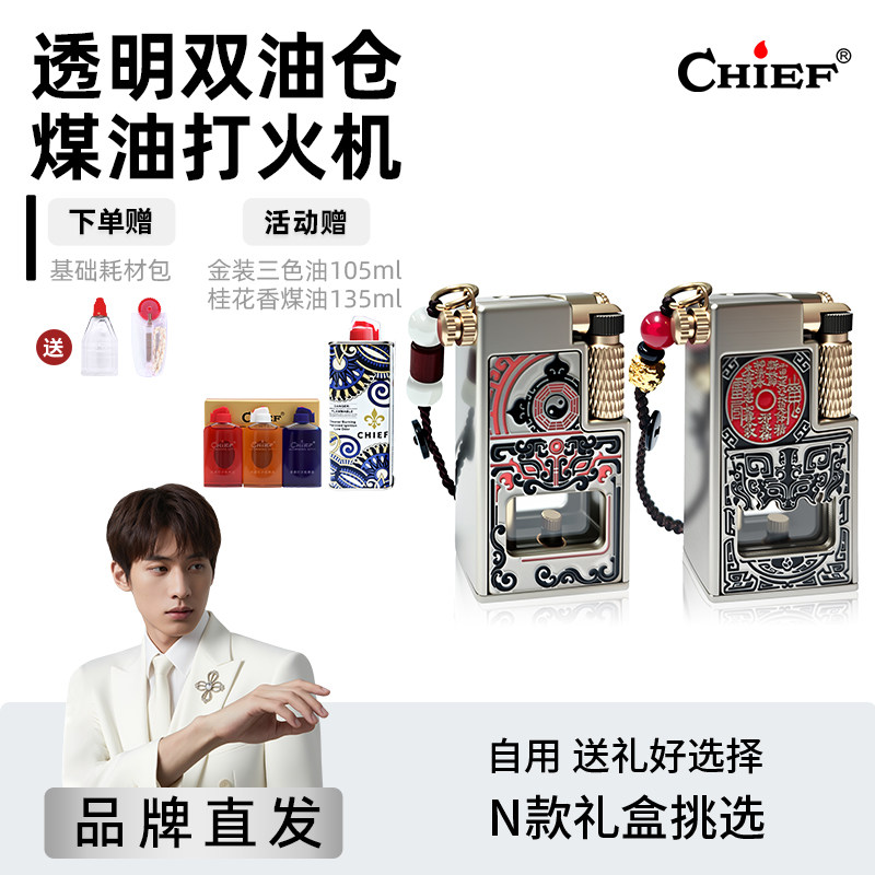 📚 chief705首领煤油打火机黄金叶双油仓透明仓自用送礼礼盒防风
