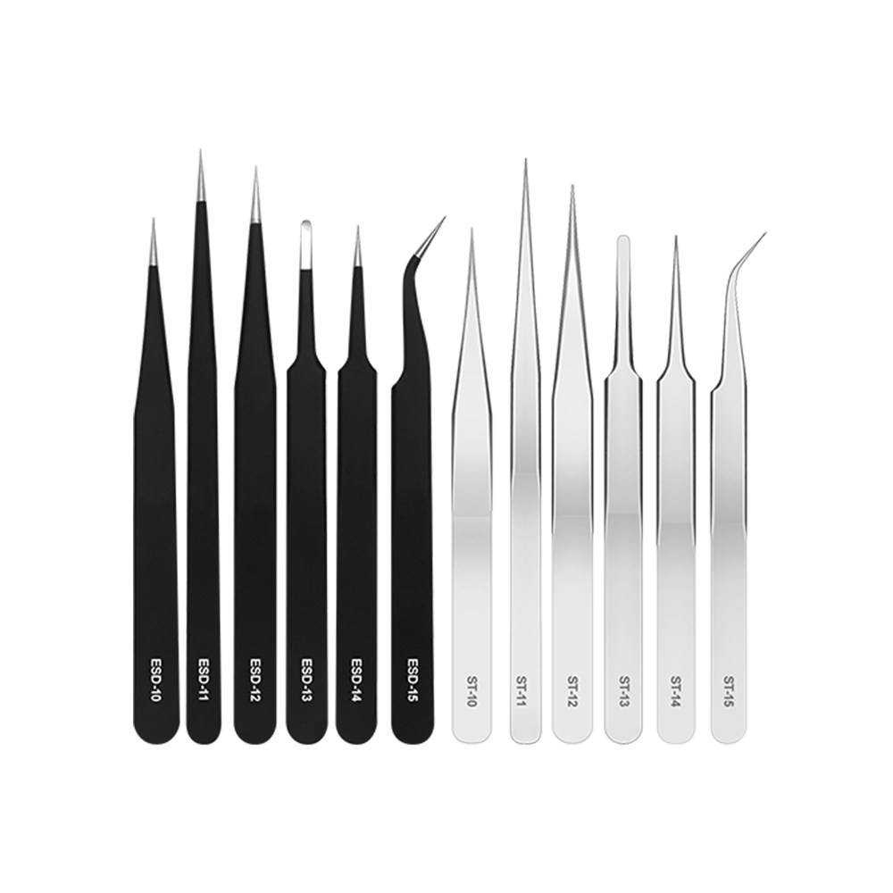 📚 安立信不锈钢防静电镊子小夹子燕窝挑毛尖头弯头手账工具维修套装
