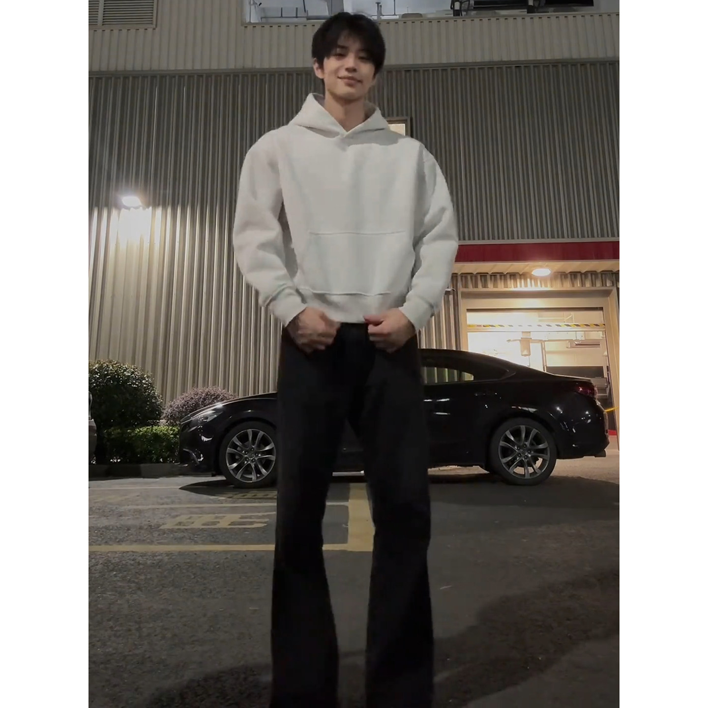 📚 cleanfit短款连帽卫衣男款秋季boxy短宽重磅硬挺上衣白花灰色外套