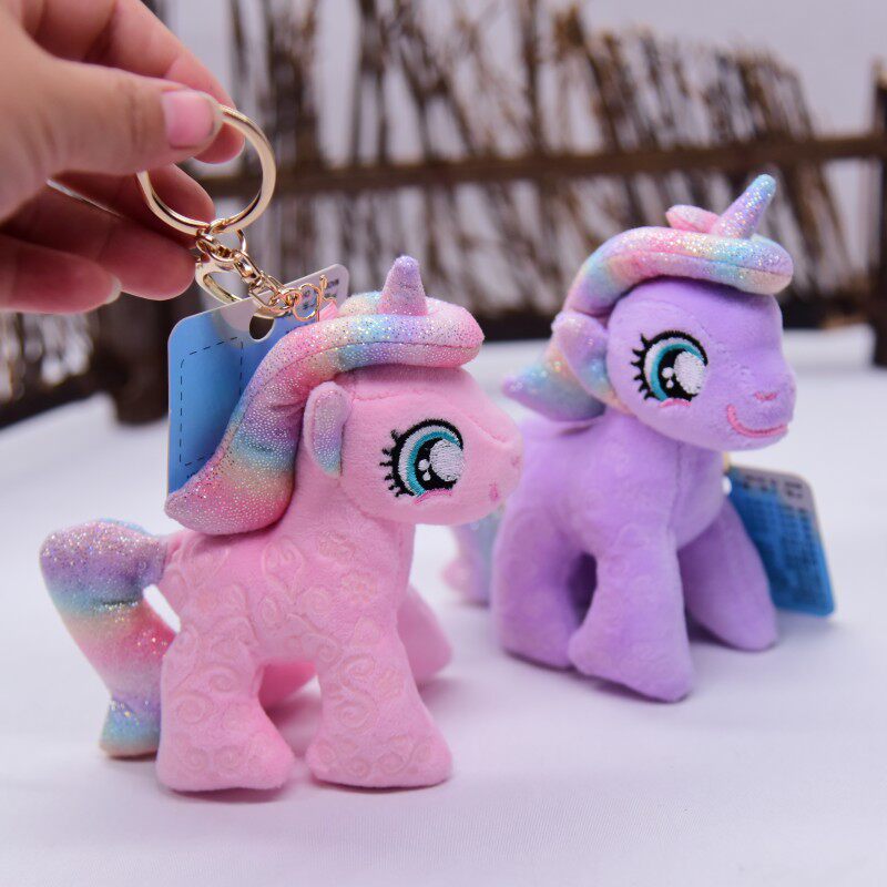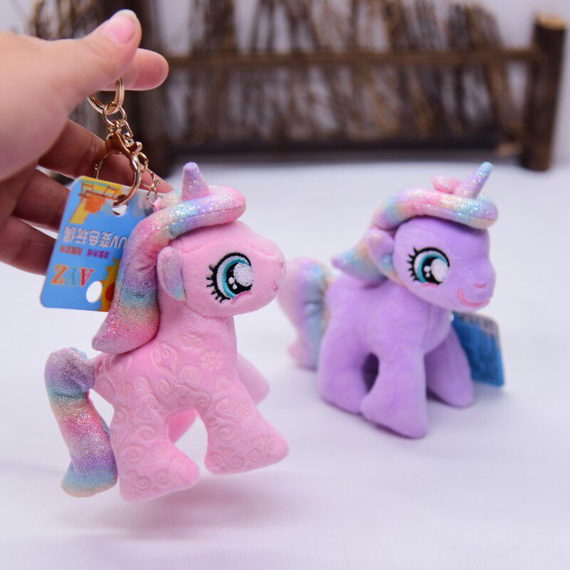 📚 新款网红紫外线变色小马独角兽公仔毛绒玩具钥匙扣书包挂饰小挂件
