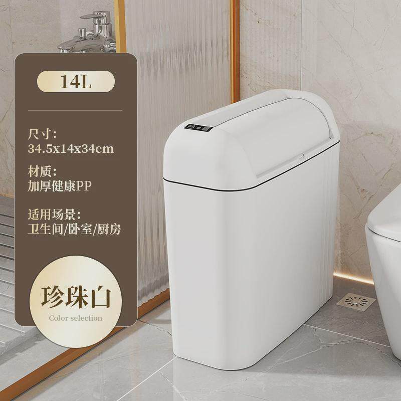 📚 智能感应垃圾桶家用厕所用密封防臭厨房高颜值自动开盖夹缝纸篓