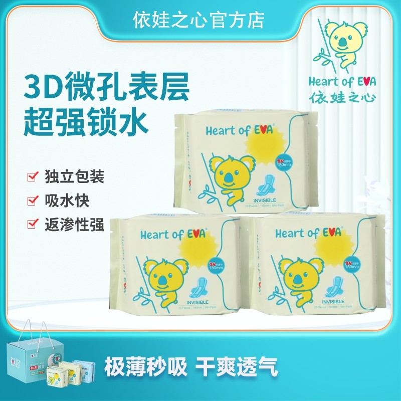 📚 依娃之心超薄迷你180mm卫生巾瞬吸锁水干爽棉柔亲肤少女姨妈巾