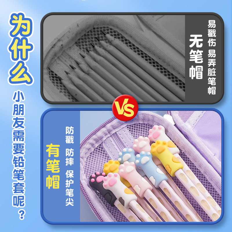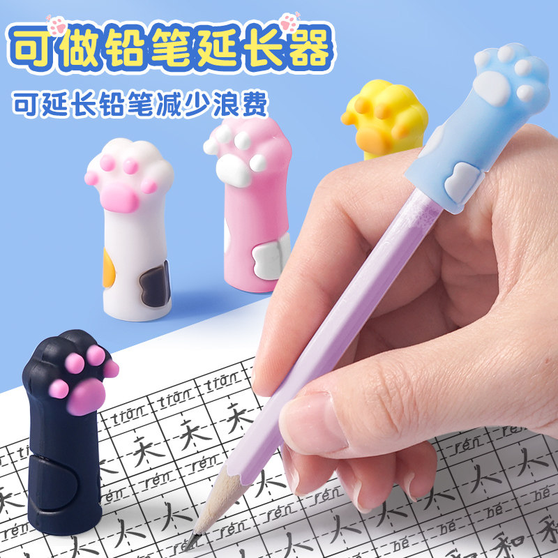 📚 铅笔帽猫爪笔套铅笔延长器笔帽小学生一年级幼儿园初学者笔盖铅笔头保护套软硅胶儿童女孩铅笔盖笔冒高颜值E1