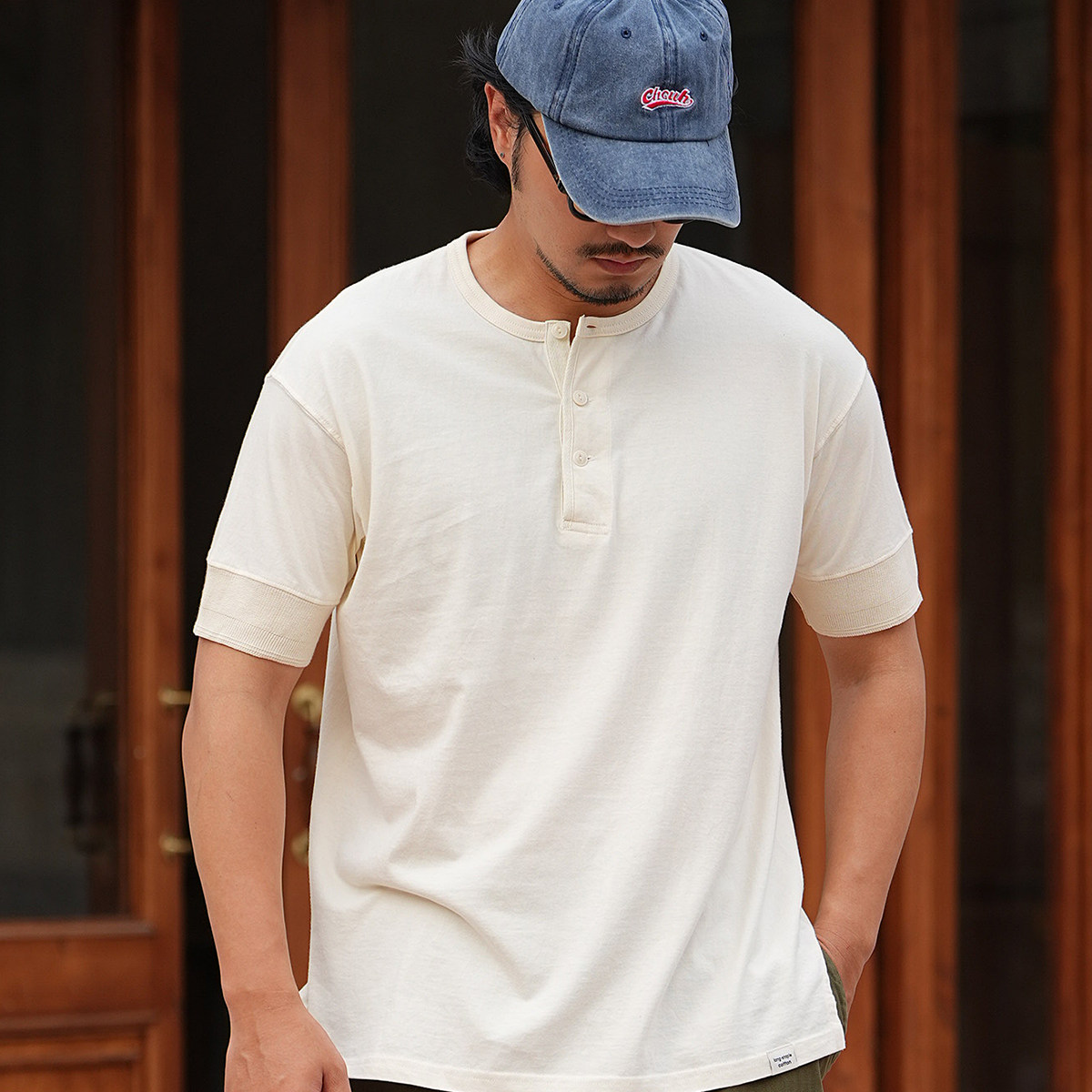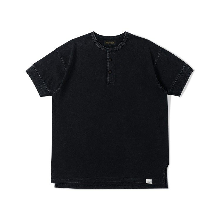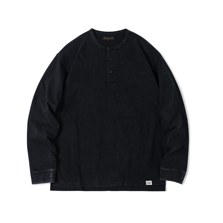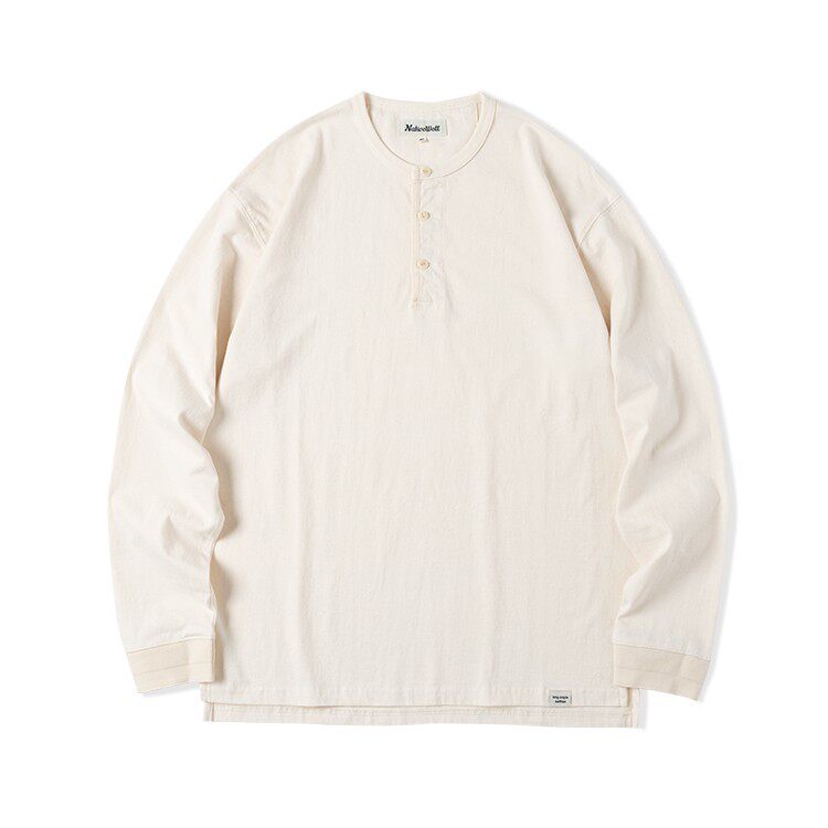 📚 NATIVEWELL无缝桶织亨利领短袖长袖teeT恤成衣染色美式复古长绒棉
