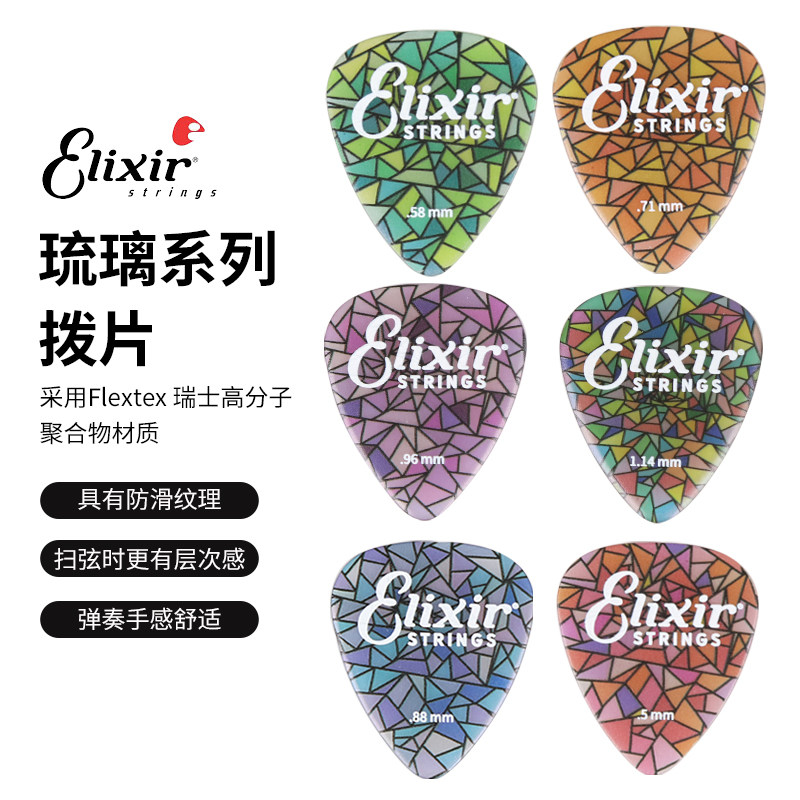 📚 Elixir伊利克斯吉他拨片炫彩琉璃民谣扫弦电吉他速弹贝司防滑PICK