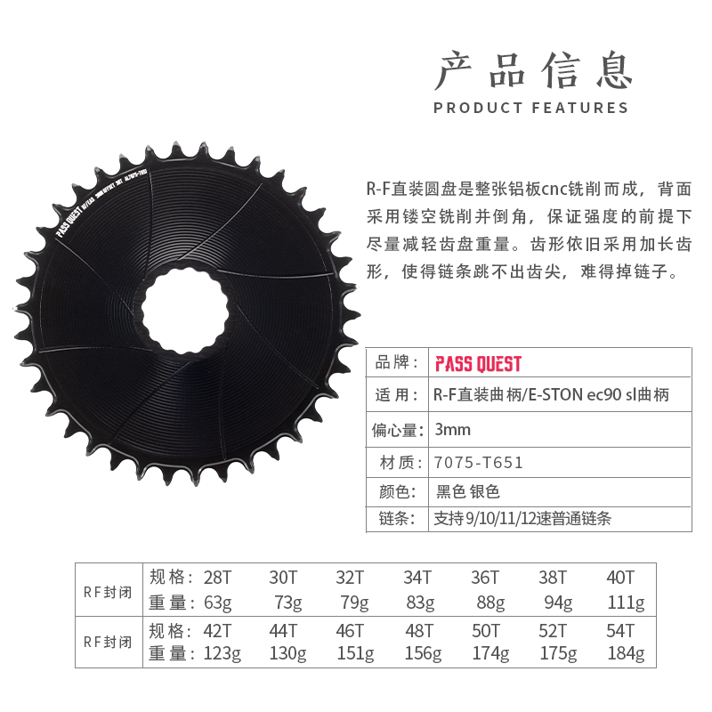 📚 PASS QUEST raceface/Easton/XXE直装牙盘片正负齿单盘3mmoffset