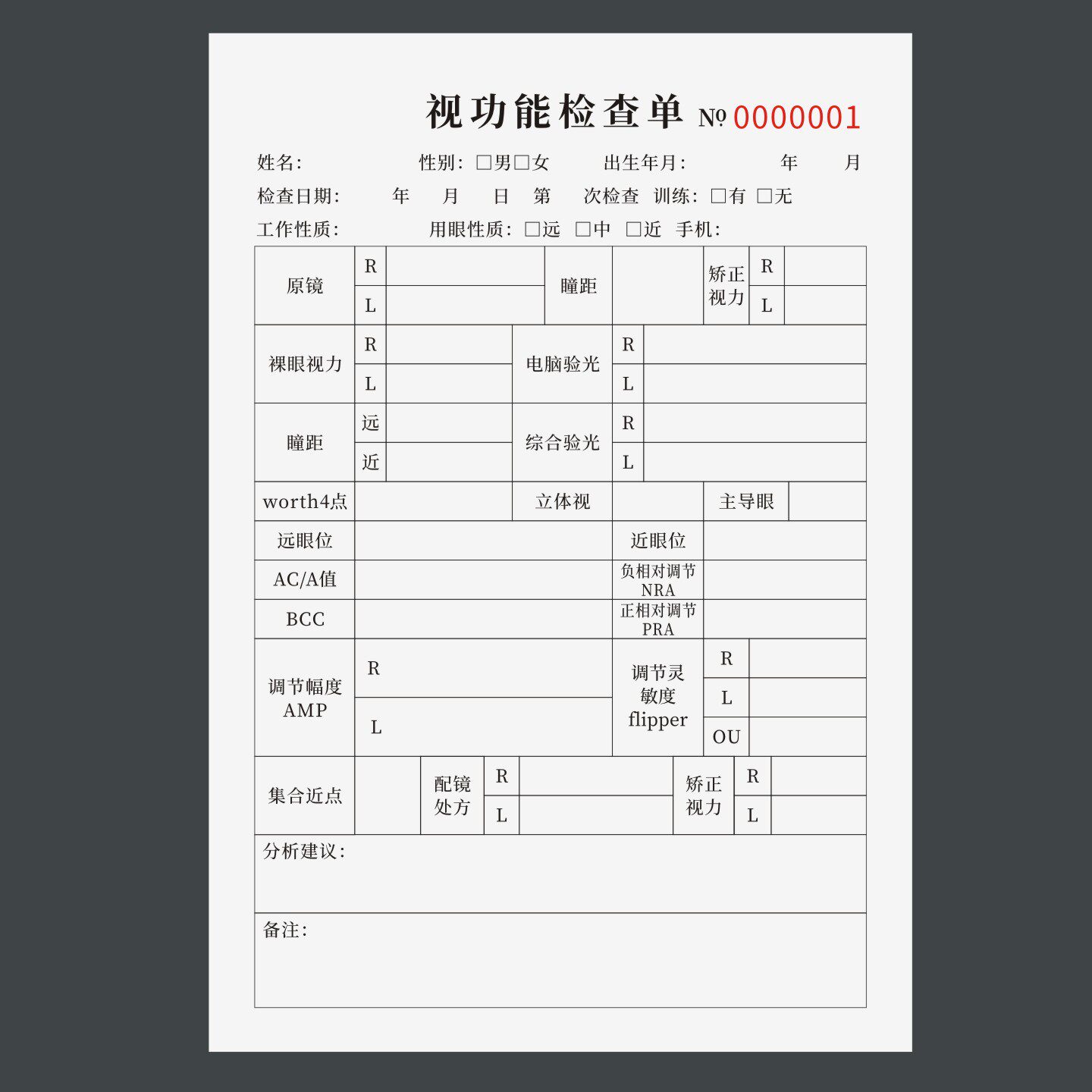 📚 视功能检查单通用版眼视力分析检查视光检测保养记录单验光检查单