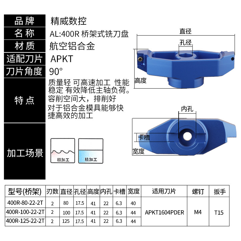 📚 铝用刀盘1604数控BT40飞刀盘BT30铝合金铣刀盘90度400R盘刀面铣刀
