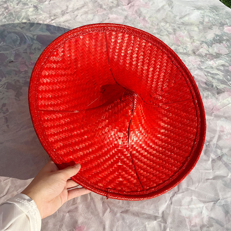 📚 翘边斗笠帽红色银色花腰竹编斗笠成人儿童舞蹈表演道具傣族斗笠帽