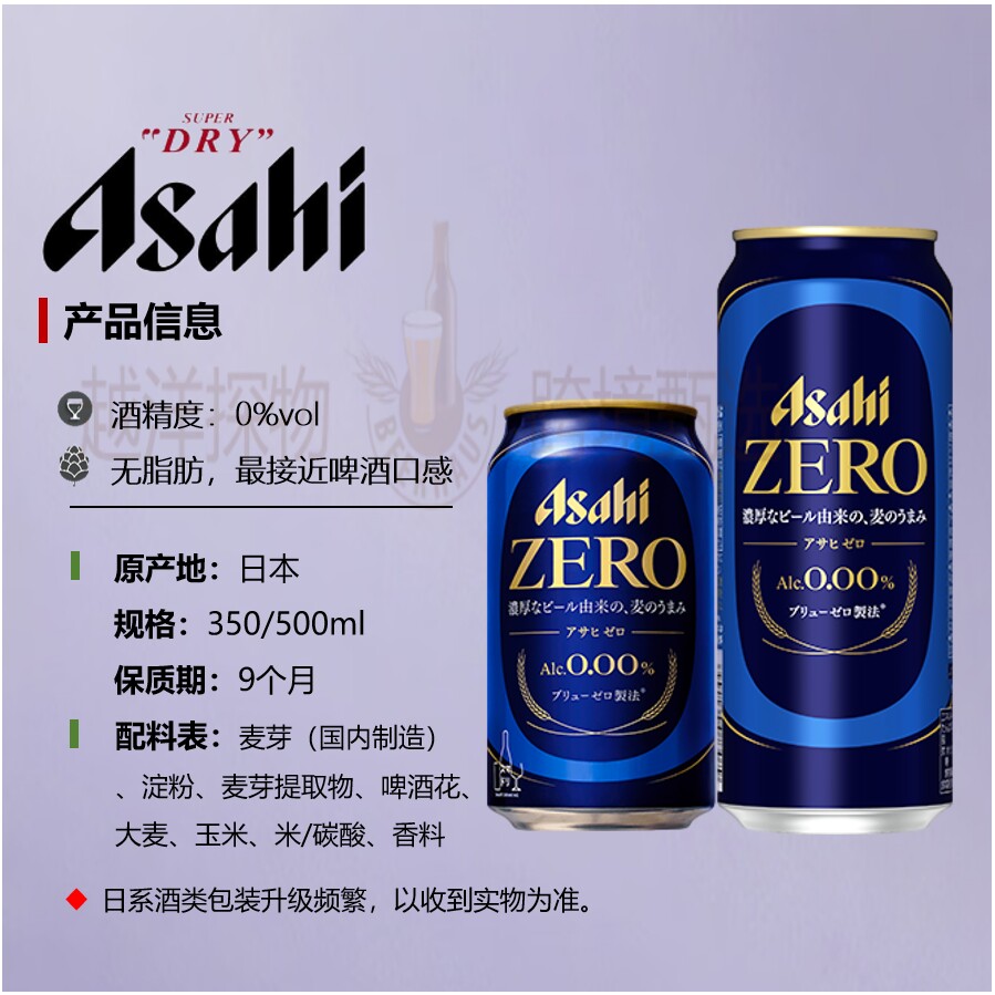📚 【1月产】Asahi朝日无酒精zero蓝罐日本原装进口无醇啤酒风味饮品