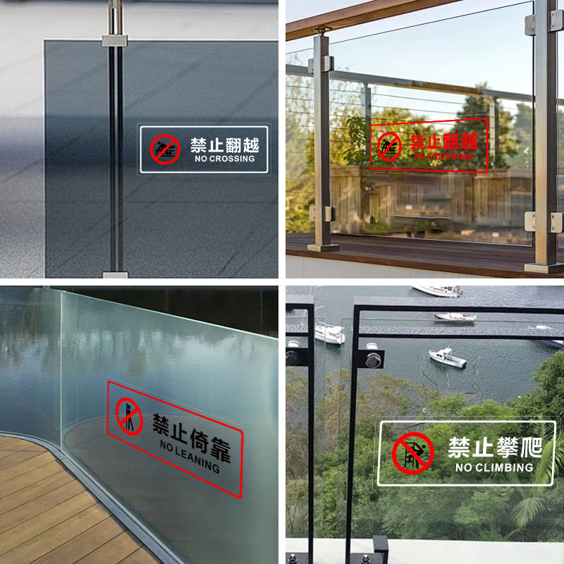 📚 禁止攀爬透明提示贴安全标识牌警告标志严禁攀爬翻越跨越玻璃扶梯栏杆护栏标示牌定制做危险商场请勿攀爬贴纸