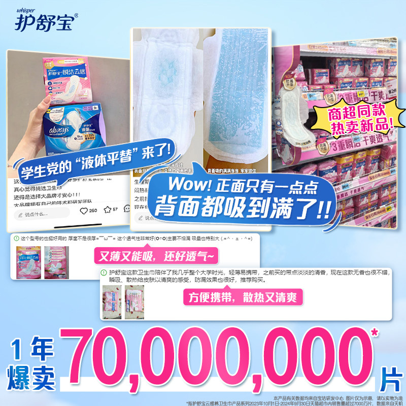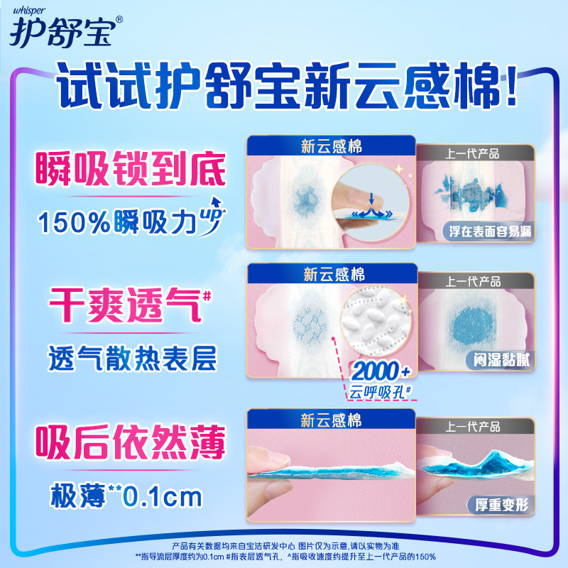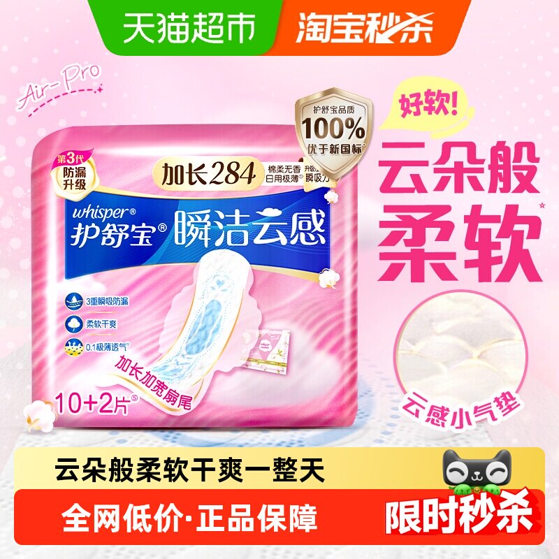 📚 护舒宝瞬洁云感棉卫生巾加长日用284mm 超薄透气干爽姨妈巾