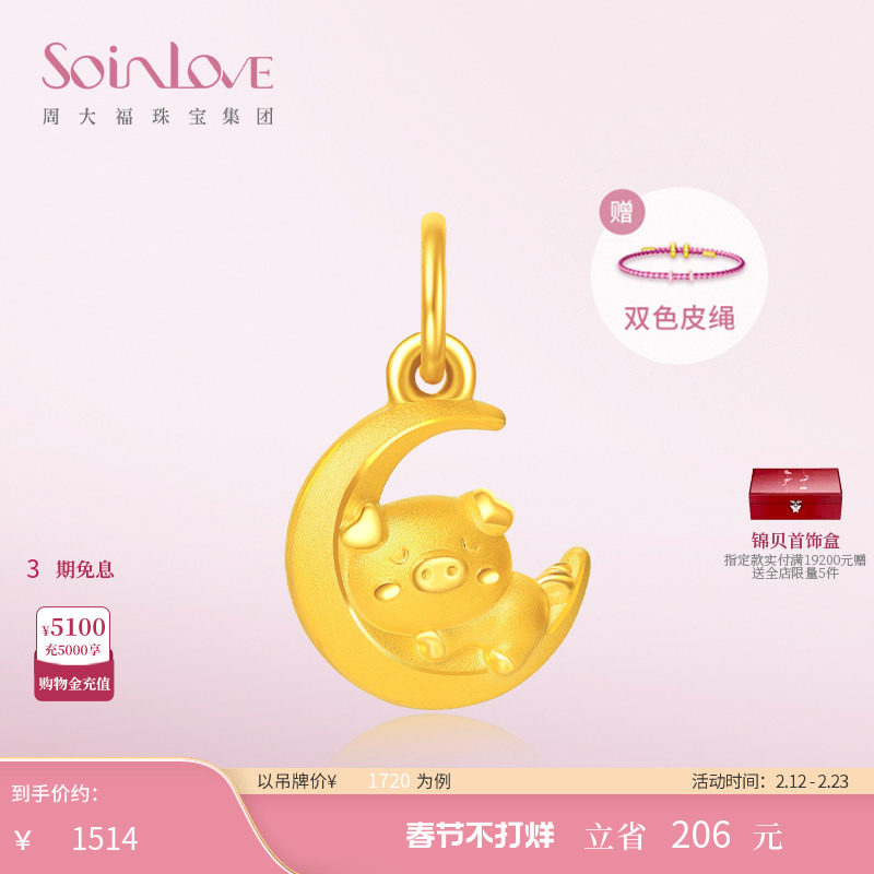 📚 周大福SOINLOVE萌宠月亮黄金猪足金吊坠手链VR1009情人节礼物