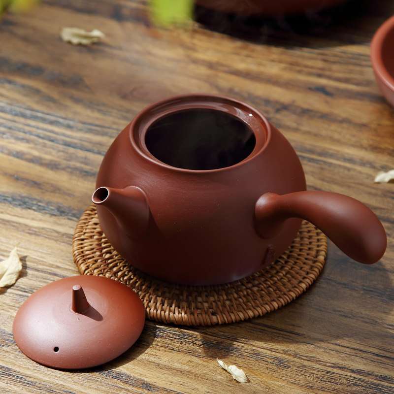 📚 潮州朱泥陶壶 粗陶煮茶壶烧水壶 紫砂电陶炉侧把壶手工薄胚砂铫壶