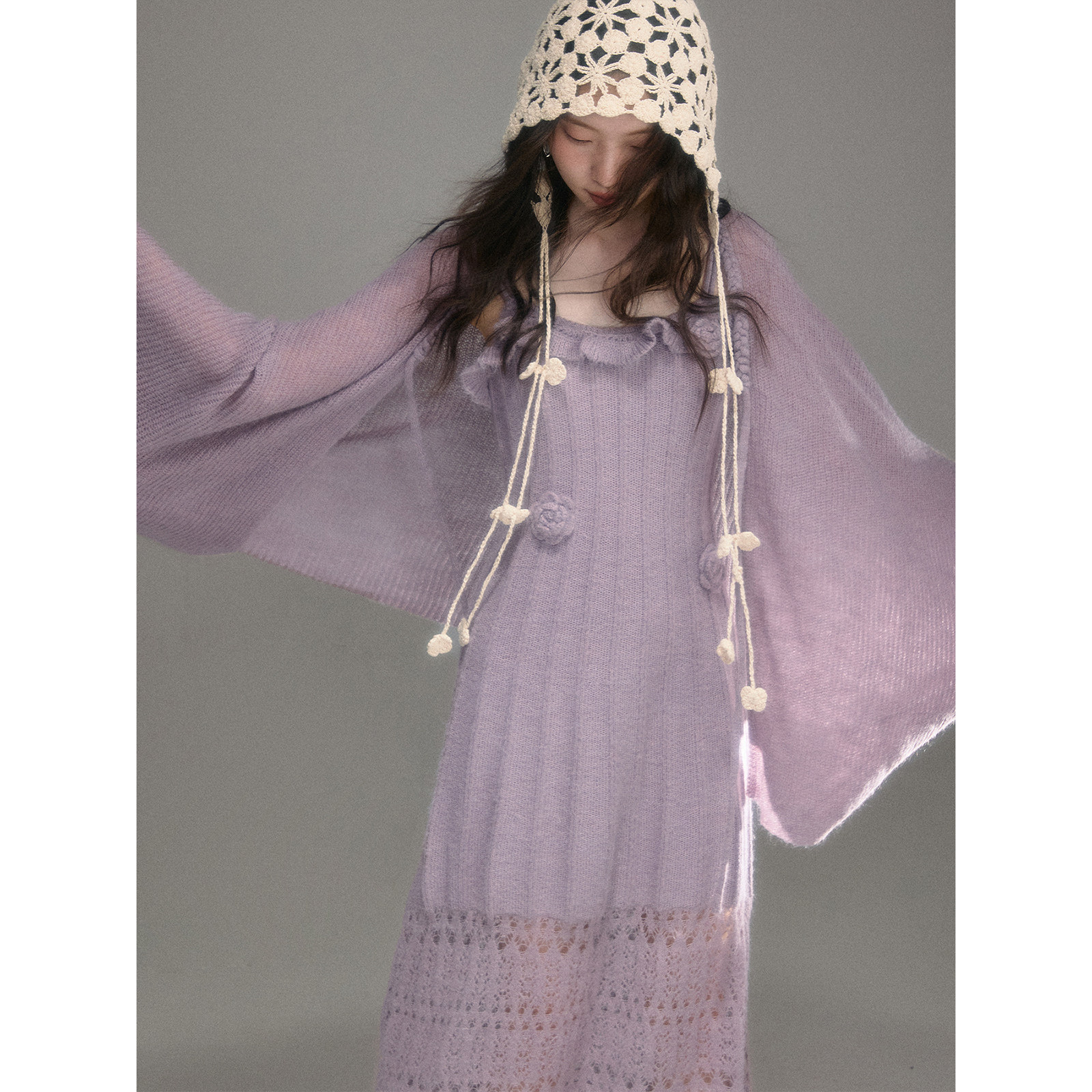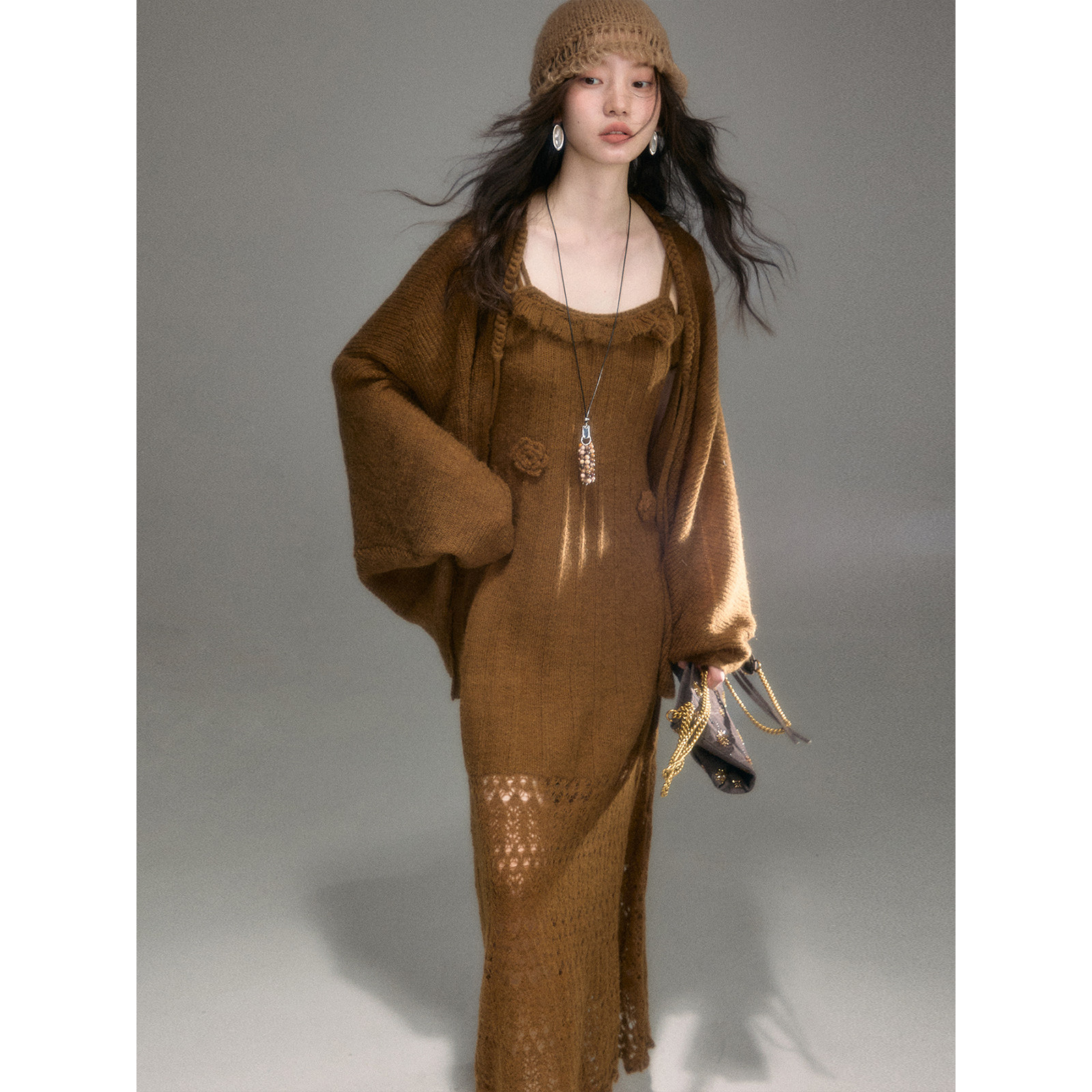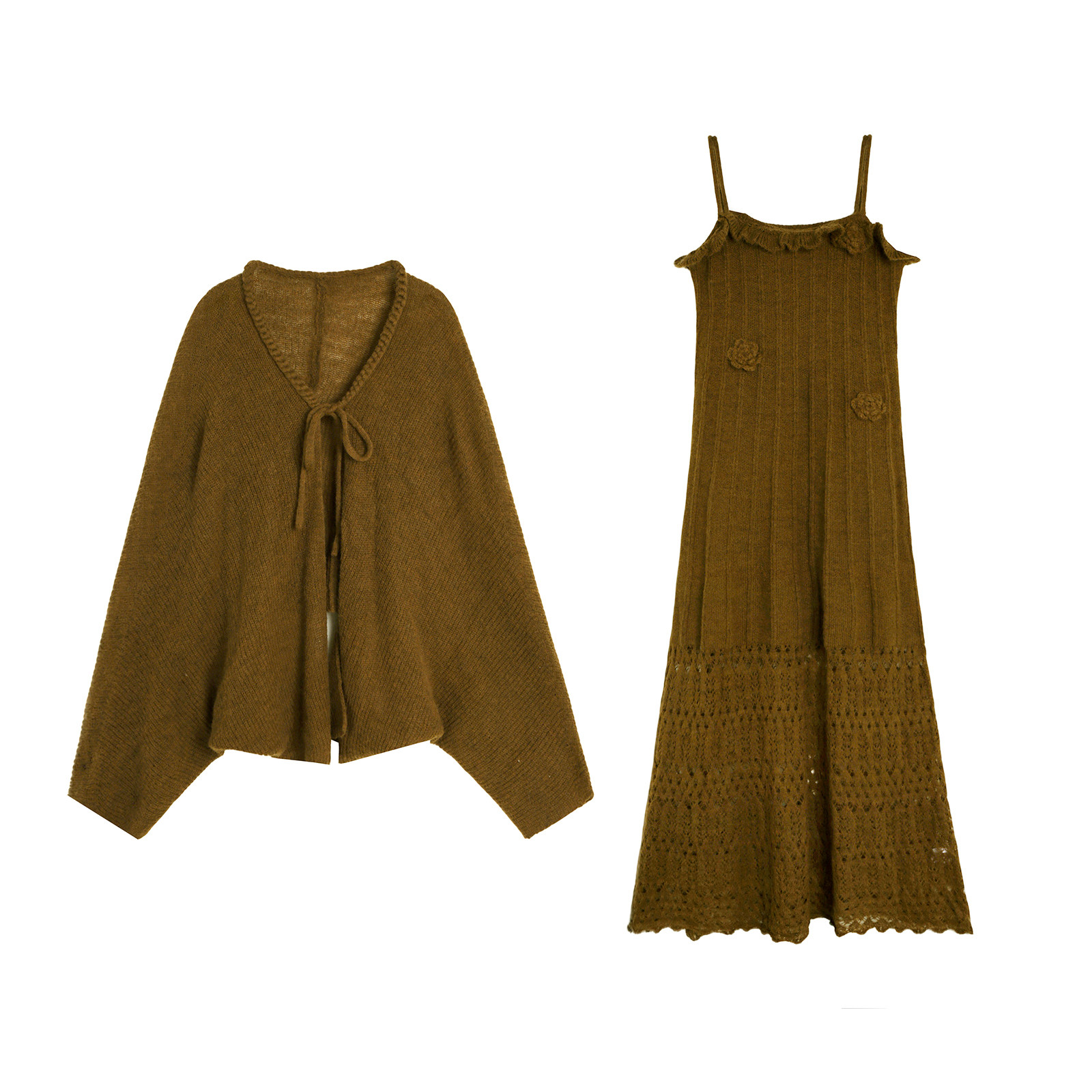 📚 有耳uare小众设计 漫步墨尔本 手钩花针织吊带连衣裙罩衫开衫套装