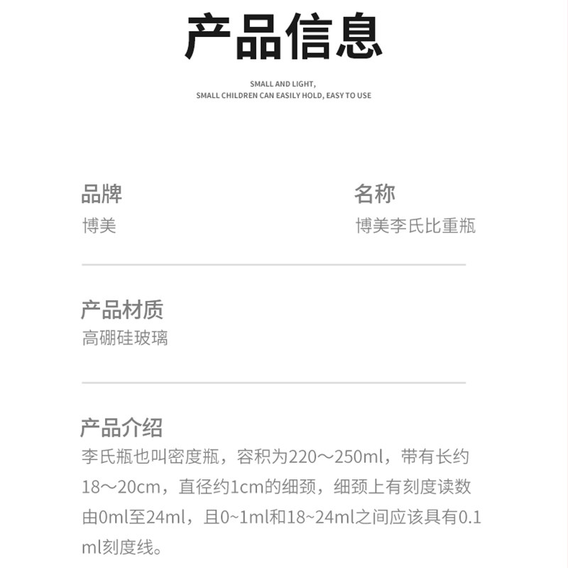 📚 玻璃李氏比重瓶 水泥比重瓶 固体比重瓶 手工刻度线 实验室