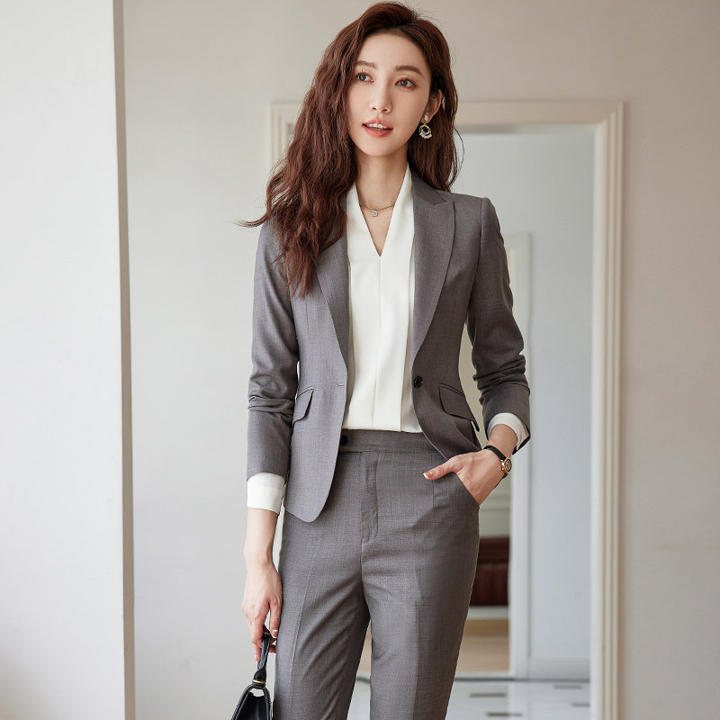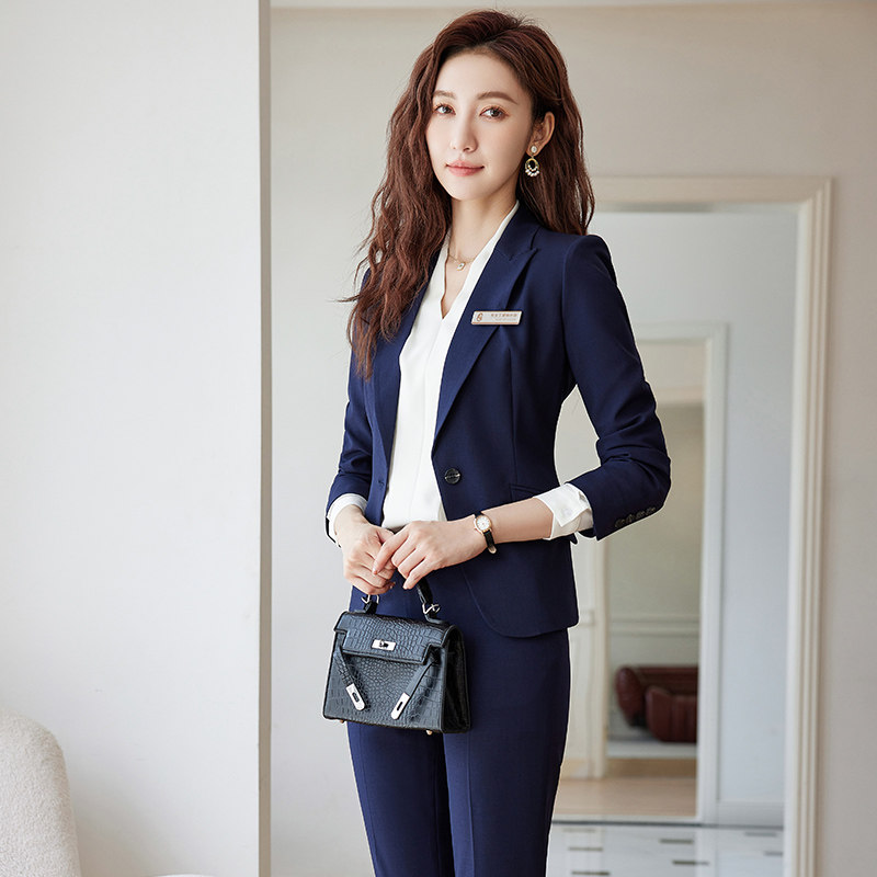 📚 气质女神范商务正装春秋季经理面试售楼部职业工作服藏青西装套装