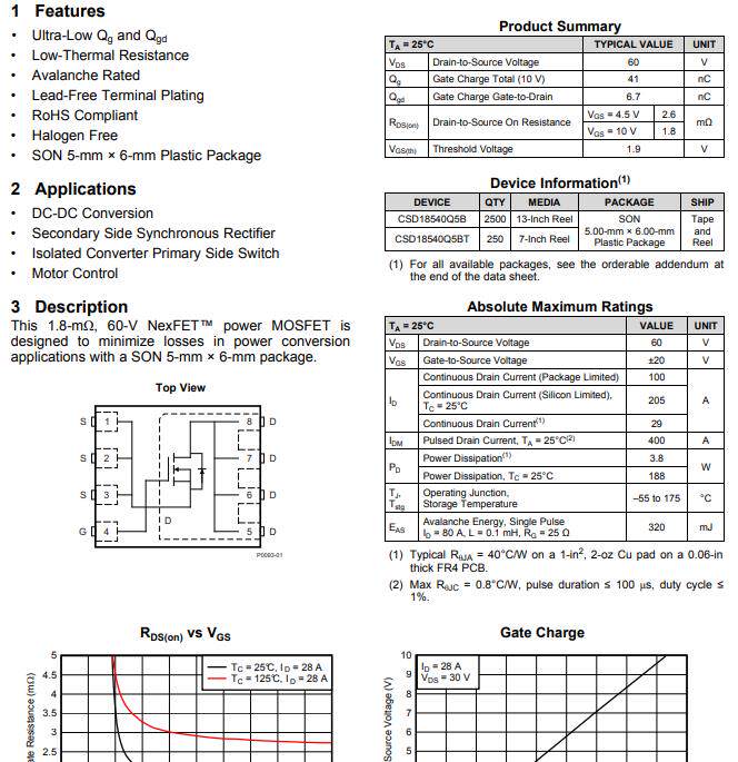 📚 原装进口原字 CSD18540 QFN贴片 CSD18540Q5B N沟道MOS管 60V100A