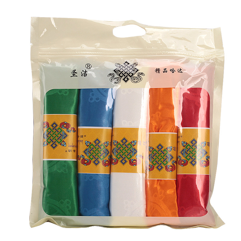 📚 圣洁精品五色哈达高档暗花八吉祥藏式藏族饰礼品批量发蒙古多规格
