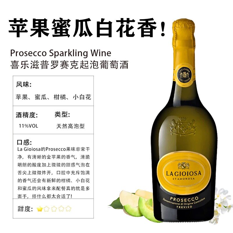 📚 火爆全球黄吨吨!意大利进口喜乐滋普罗塞克起泡气泡白葡萄酒DOC