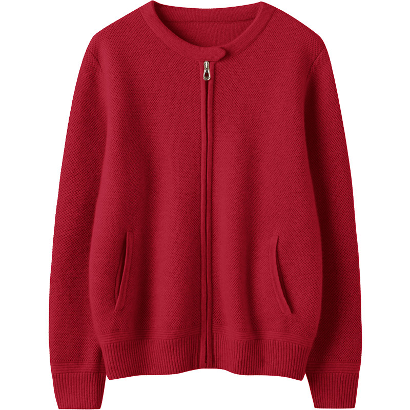 📚 浪漫与气质共存~大克重加厚圆领羊绒衫女拉链衫毛衣针织开衫外套