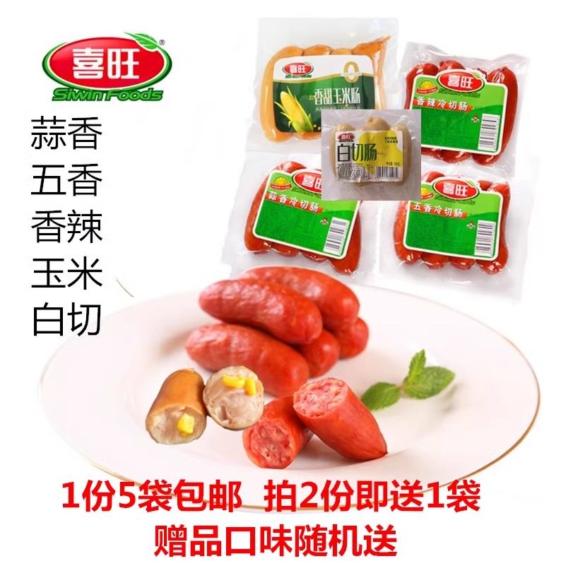 📚 烟台喜旺烤肠160g*5香肠蒜香冷切肠火腿肠儿童早餐零食下酒菜包邮
