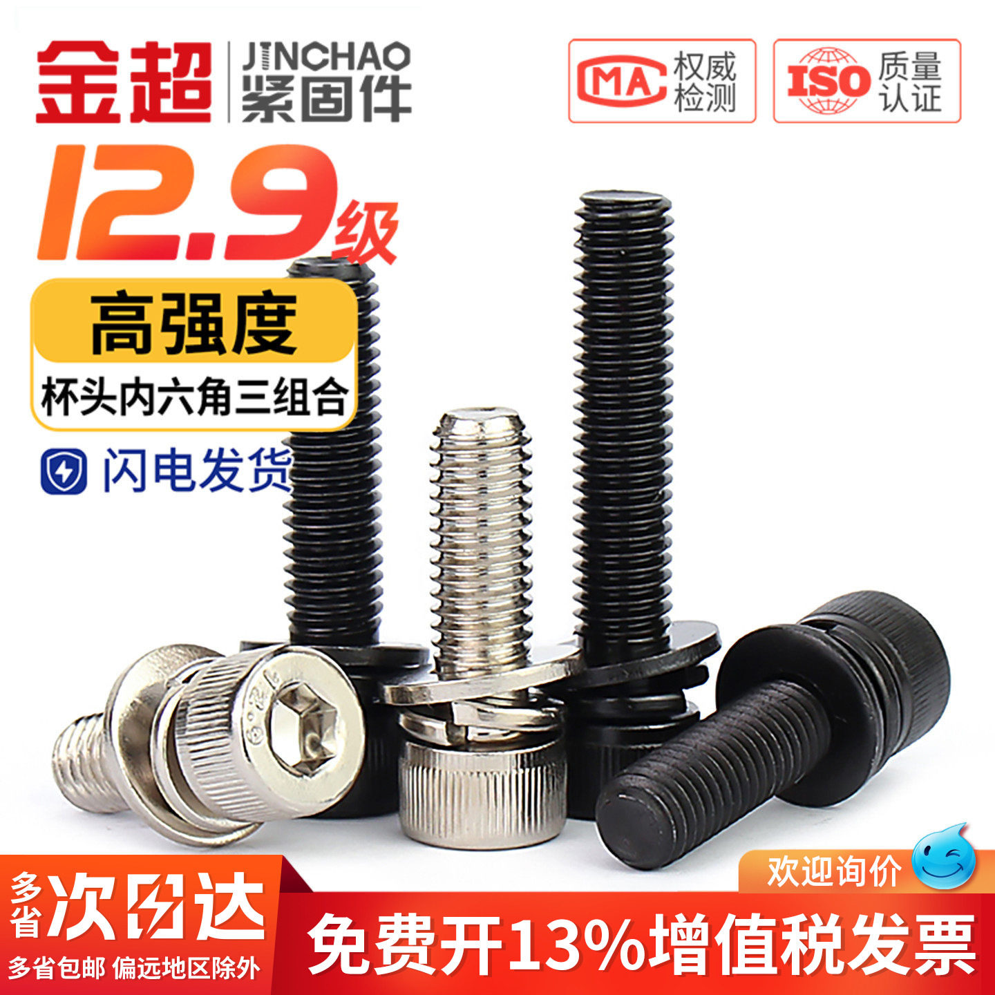 📚 12.9级内六角三组合螺丝自带平弹垫片螺钉圆柱头螺栓M3M4M5M6M8mm